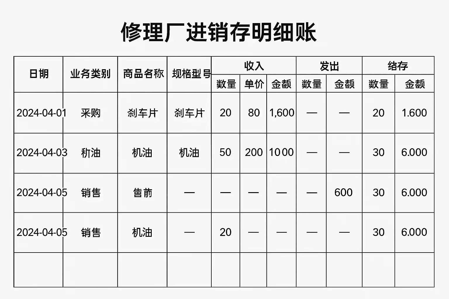 修理厂进销存明细账怎么做账?