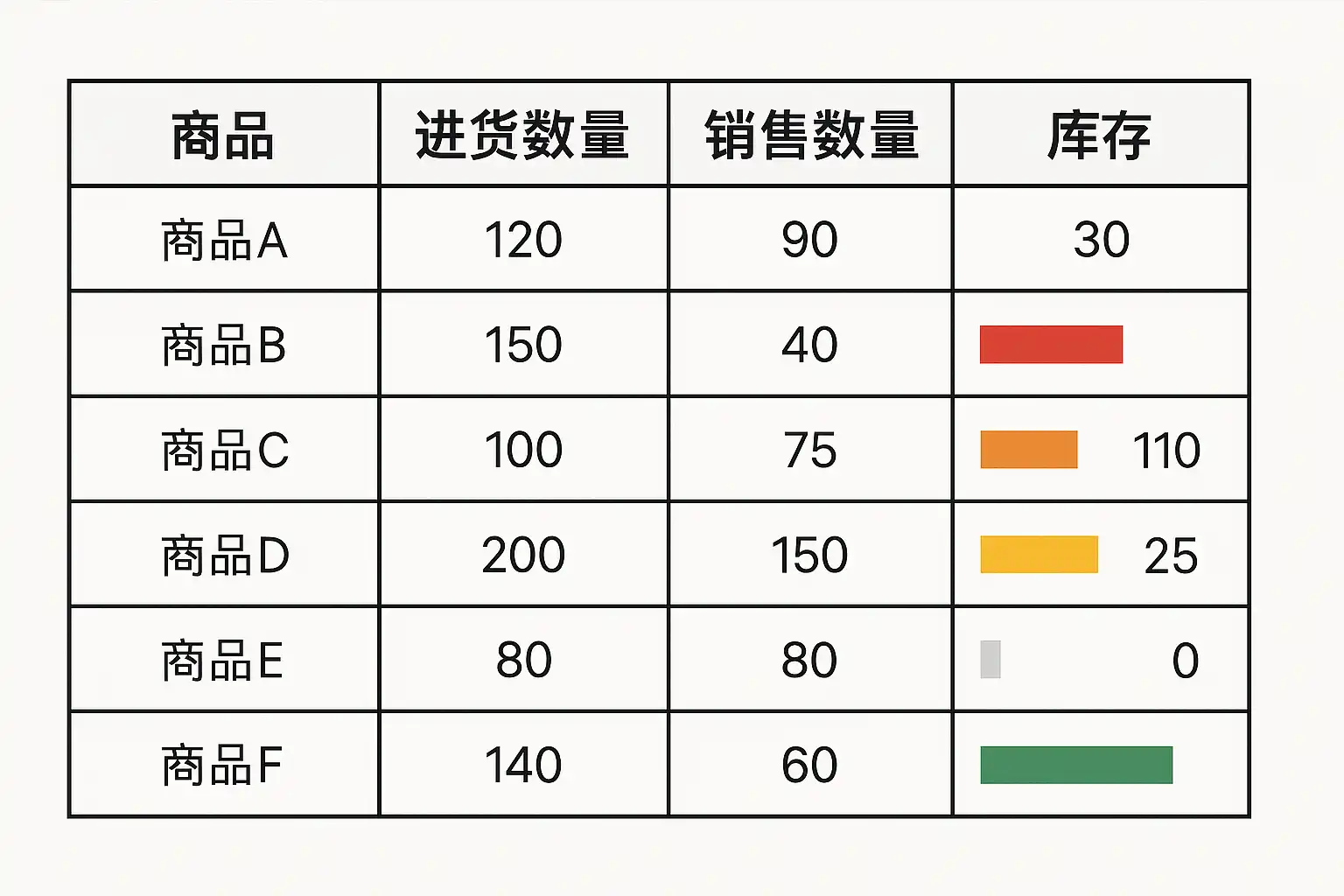 - 直观性提升:通过颜色或长度不同的条形视觉元素,一眼看到哪些商品处于安全线以下。
