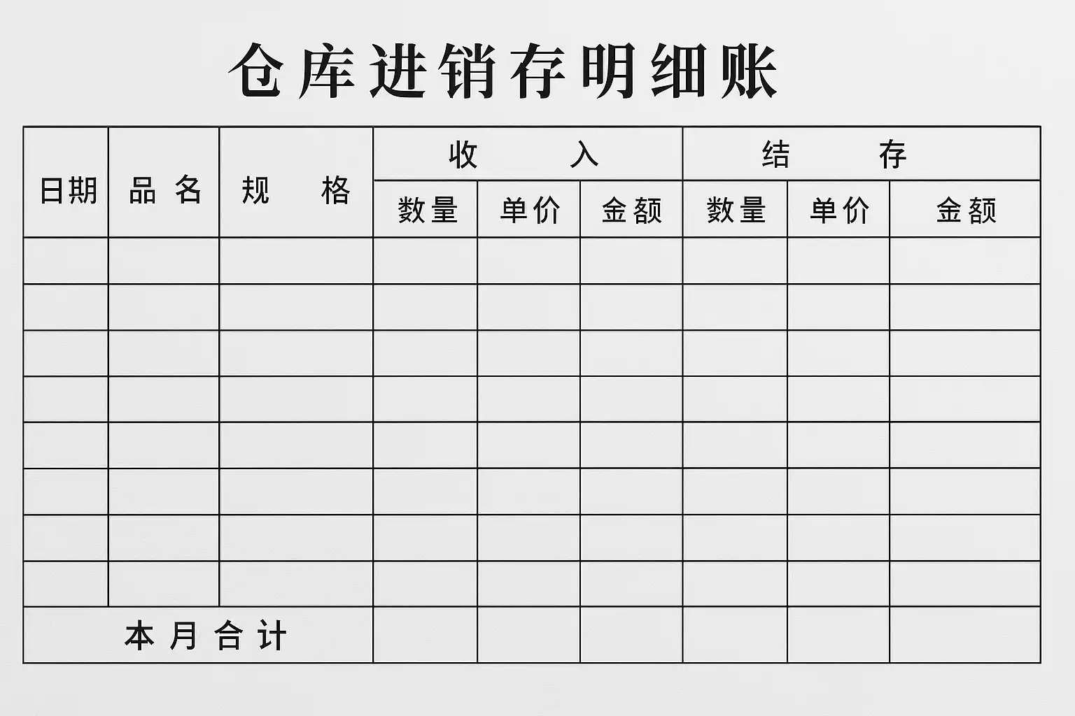 仓库进销存明细账,是企业物资管理中用于记录库存商品“入—存—出”全过程详细信息的原始凭证和台账。本月合计,则是指对一个自然月份内所有相关业务流水进行分类加总,集中反映该商品或全部商品在该期间内的收发存变动情况。