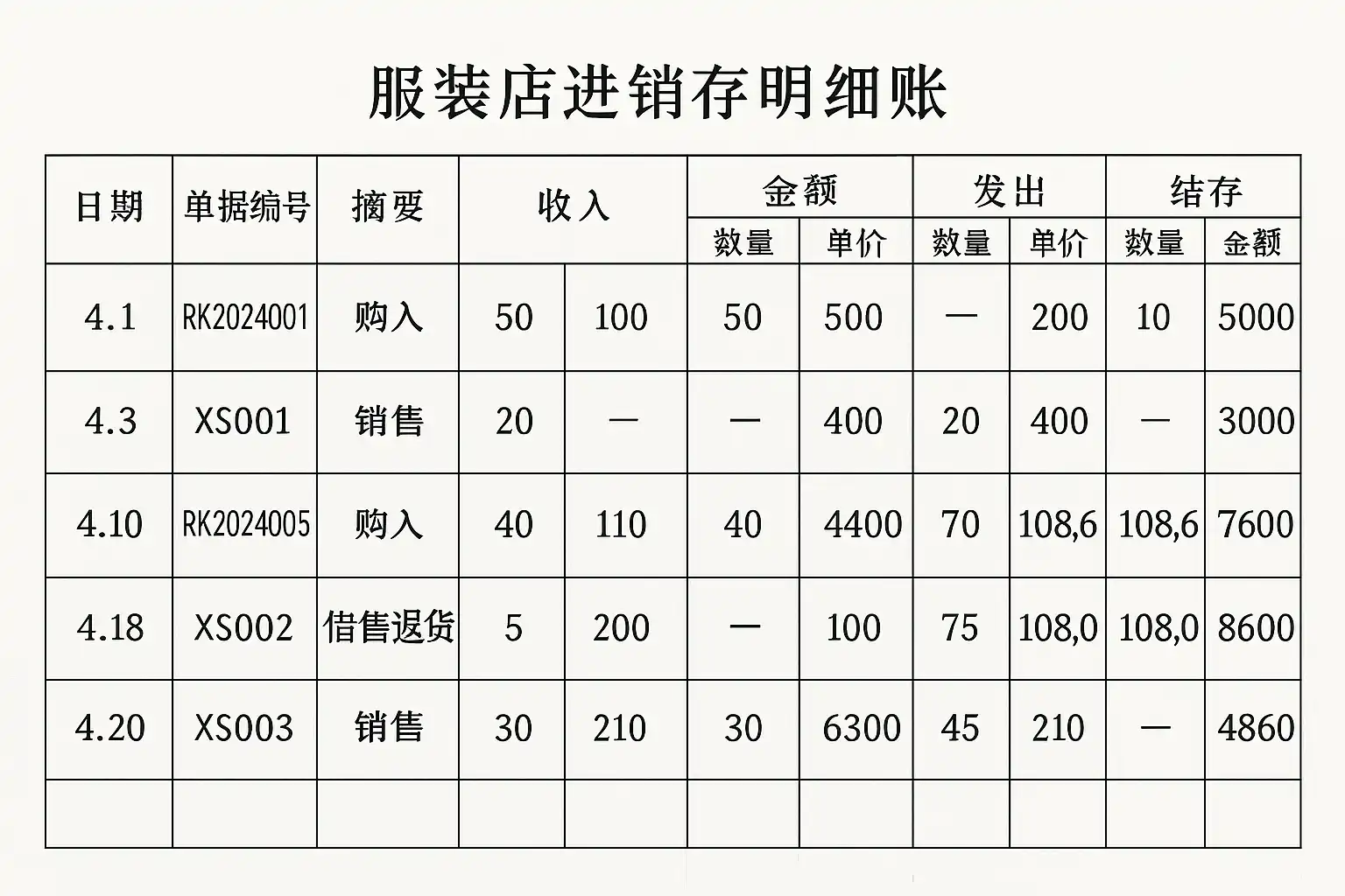 我想知道在做服装店的进销存明细账时,需要记录哪些关键数据才能保证账目准确且方便查询?具体内容有哪些?