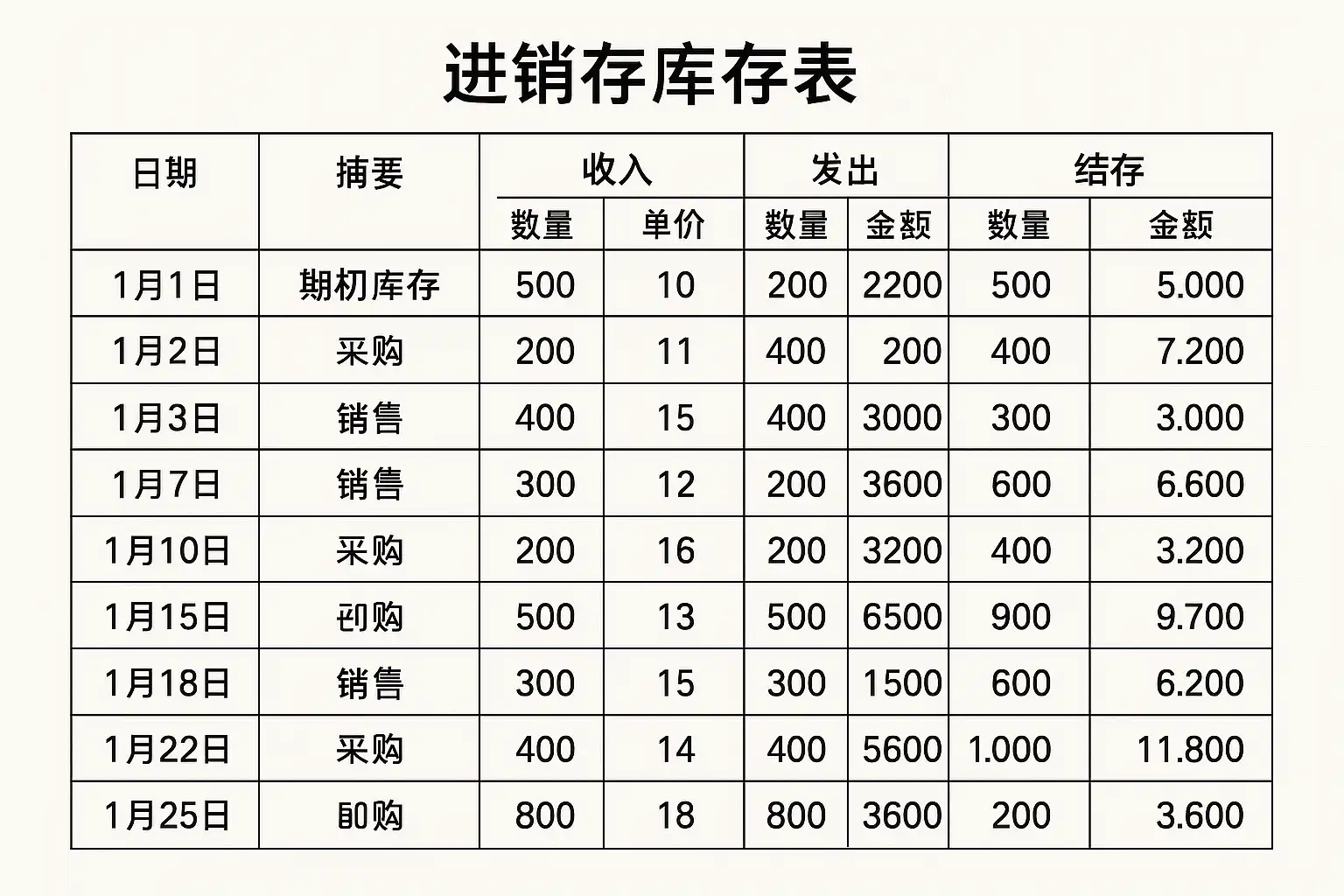 - 使用Excel或专业软件实现动态计算,如自动汇总入库和出库数量;