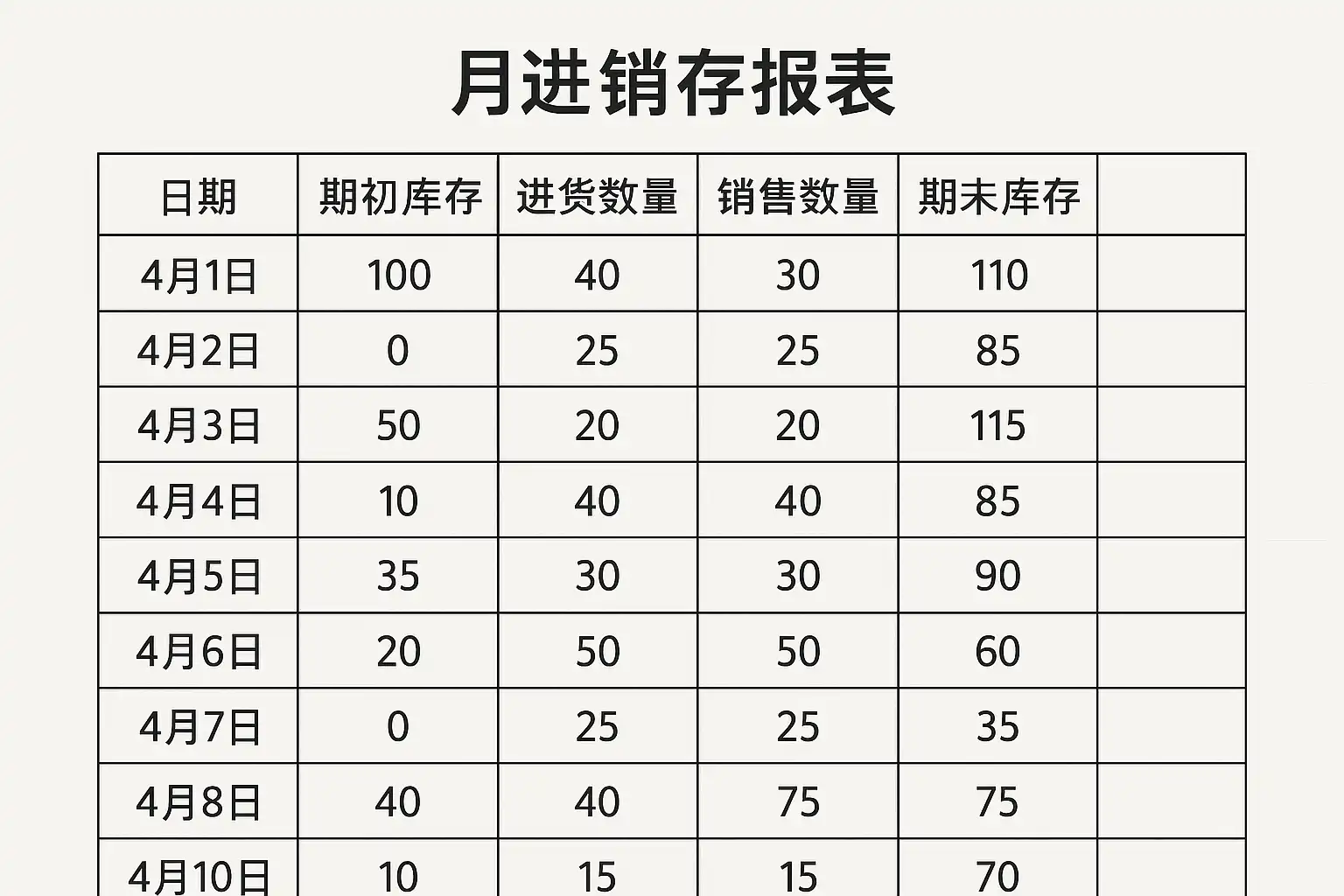 - 建议根据自身业务特点增减字段,如商品编号、单位成本等,以便后续分析。