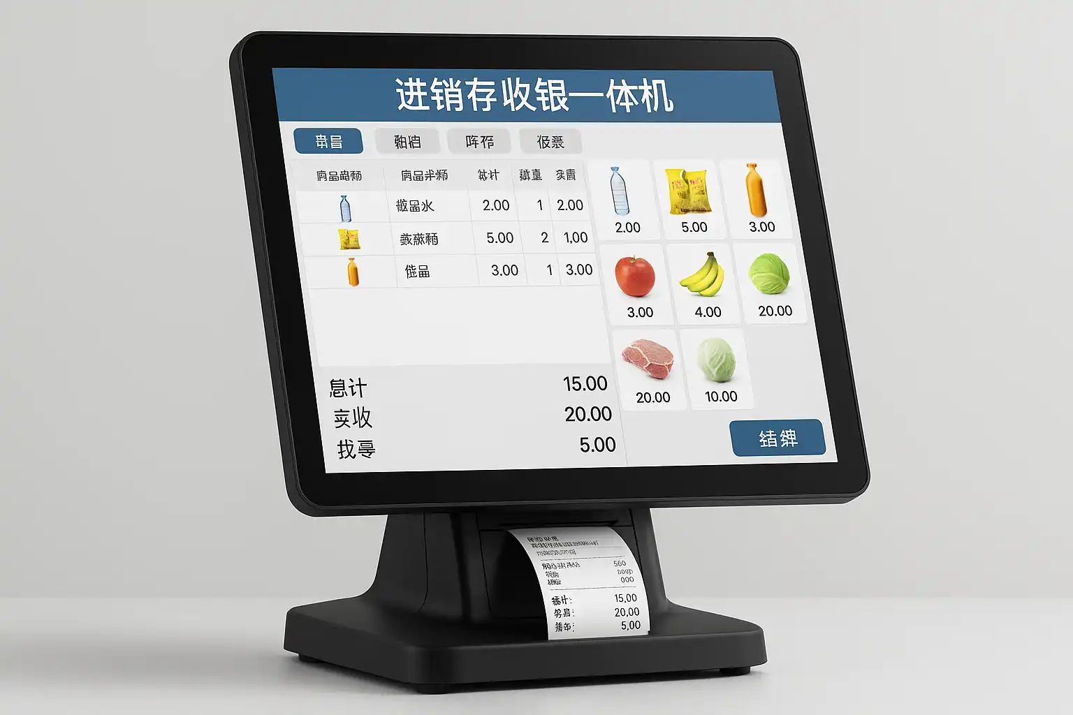 进销存收银一体机是一种融合了商品采购(进)、销售(销)、库存管理(存)及前台收银功能的智能硬件设备。它通常配备触摸屏、扫码枪、小票打印机等硬件,并内置专业的软件系统,可以实现门店日常运营中的各项数据采集和处理需求。