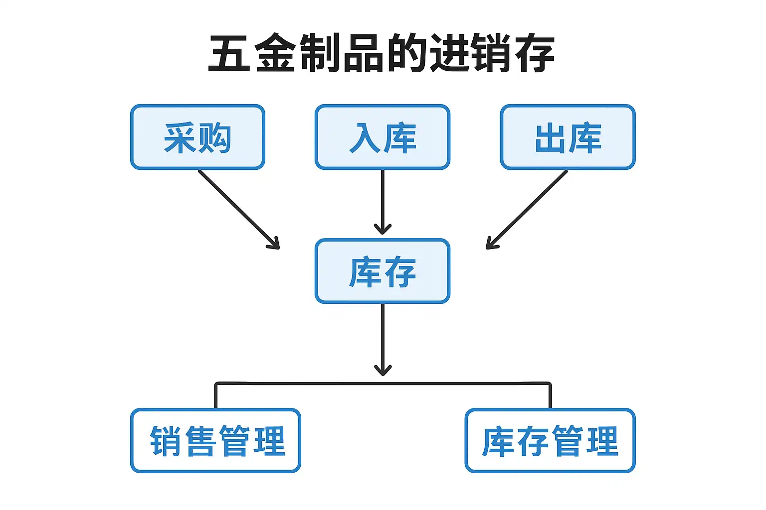 五金制品的进销存管理主要包括采购入库、库存管理、销售出库和库存盘点四大核心环节。具体如下: