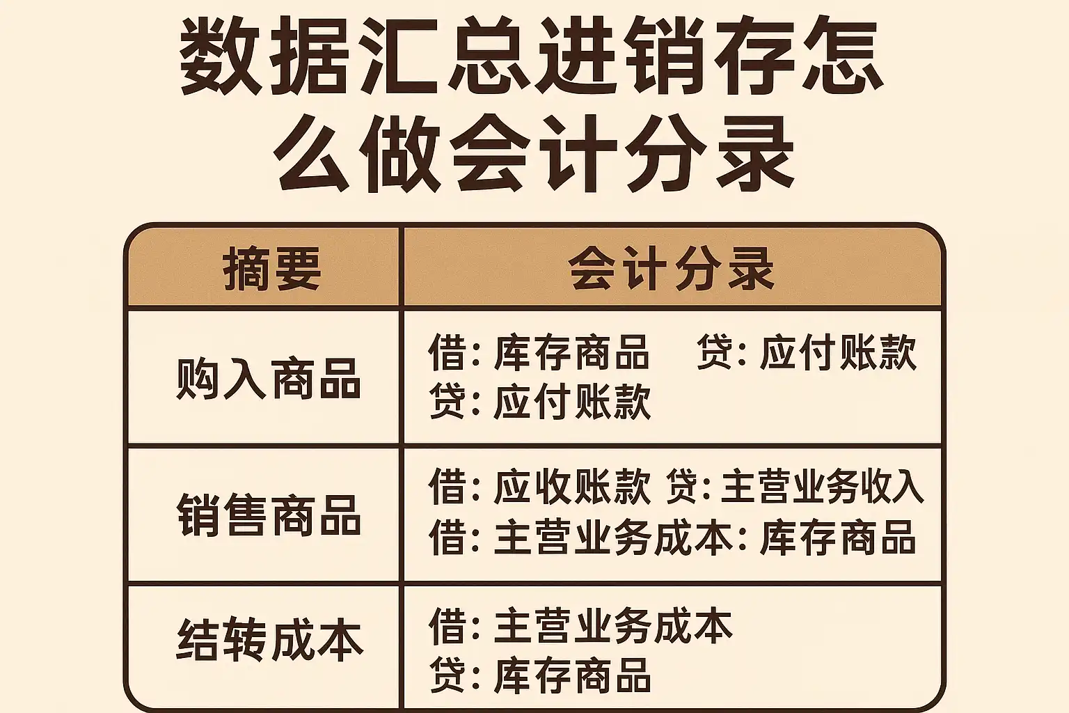 为帮助理解以下给出典型的数据汇总进销存做会计分录的标准步骤,并结合实例展开说明: