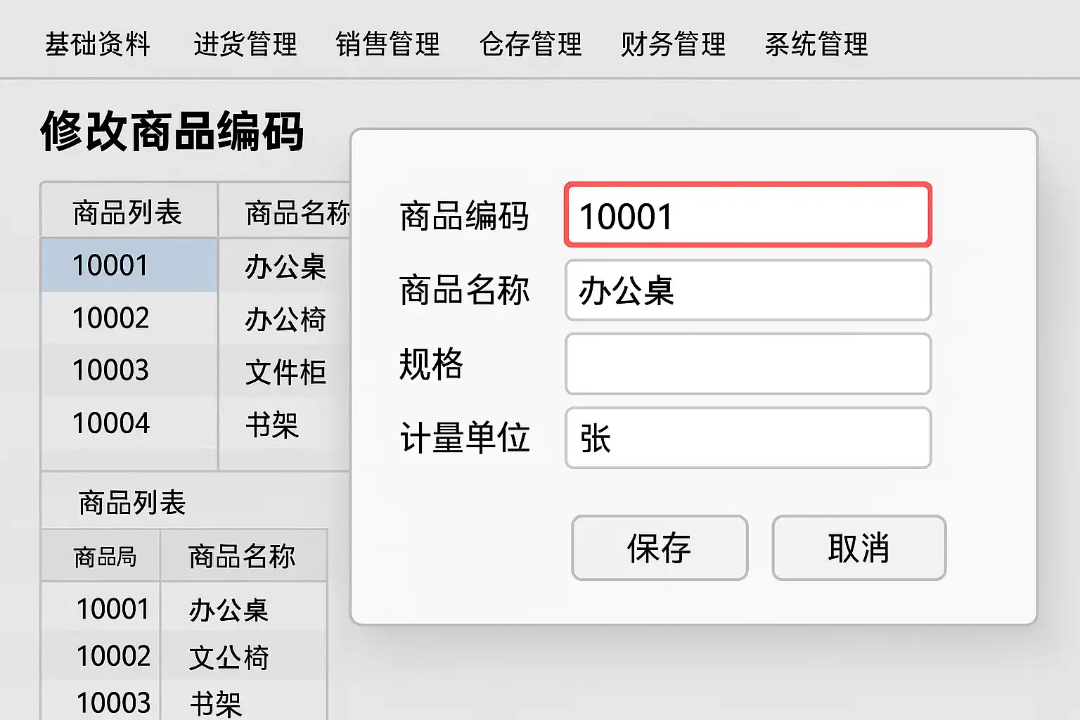 | 4 | 定位到“商品编码”字段进行修改 | 保证新编码唯一性且符合规范 |