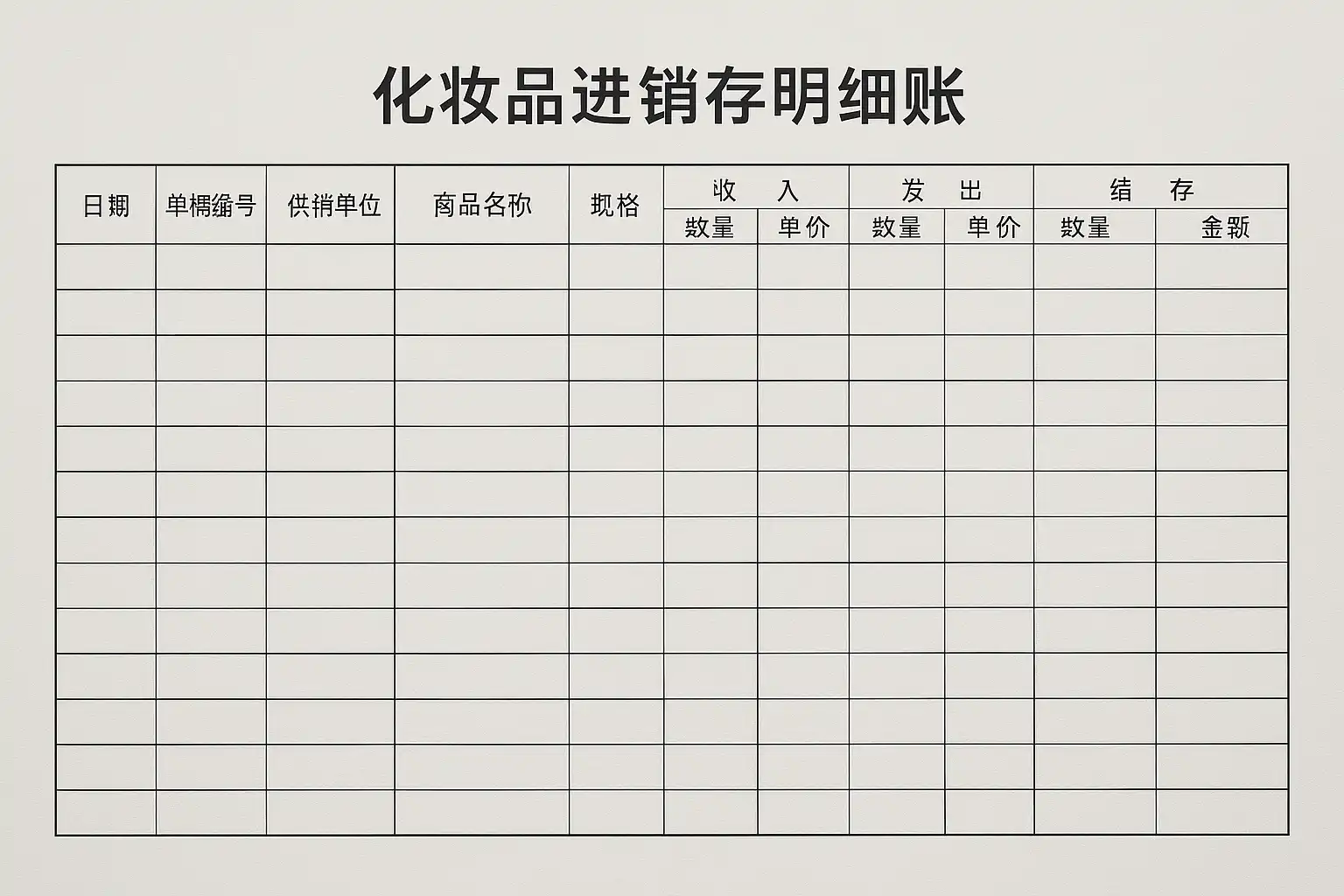 化妆品行业因SKU繁多且产品流转速度快,对进销存明细账有着较高要求。一个标准的明细账需要涵盖以下内容:
