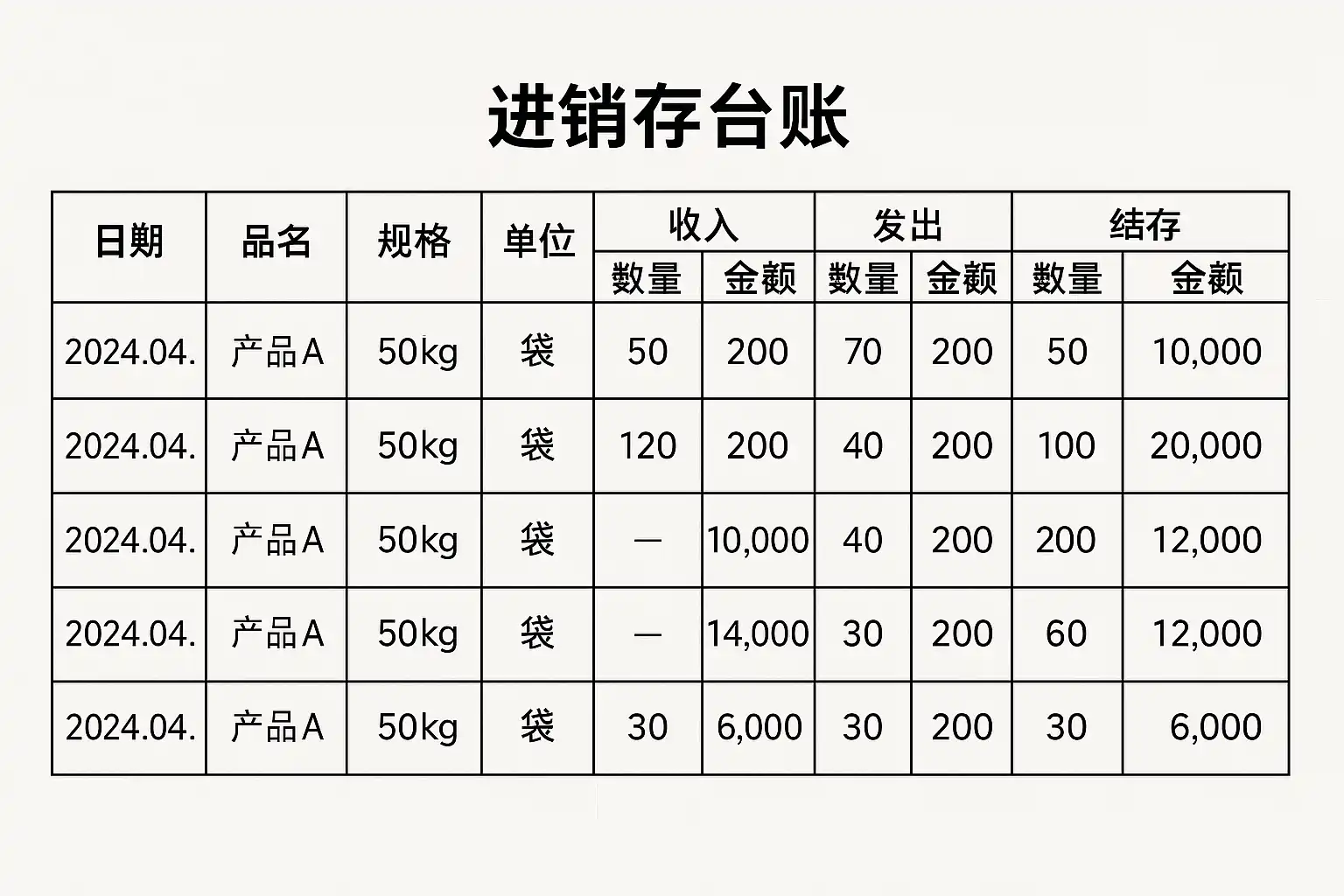 二、常见的进销存台账范本结构