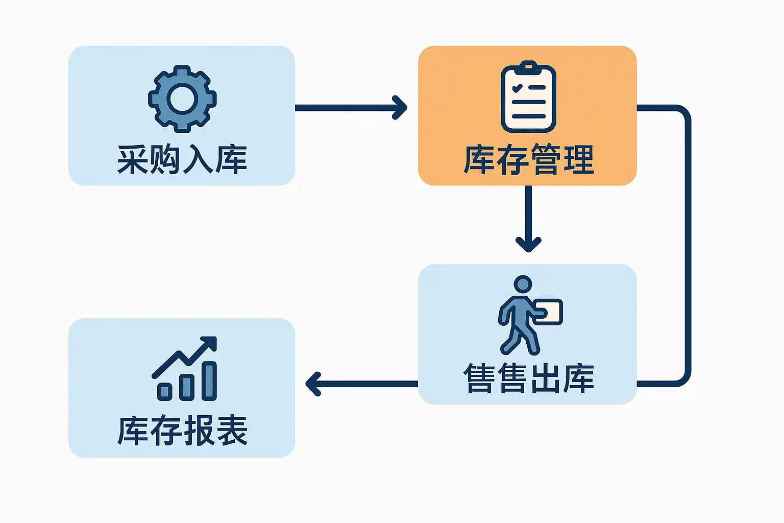 - 明确关键环节:采购、入库、库存管理、销售出库及退货处理。