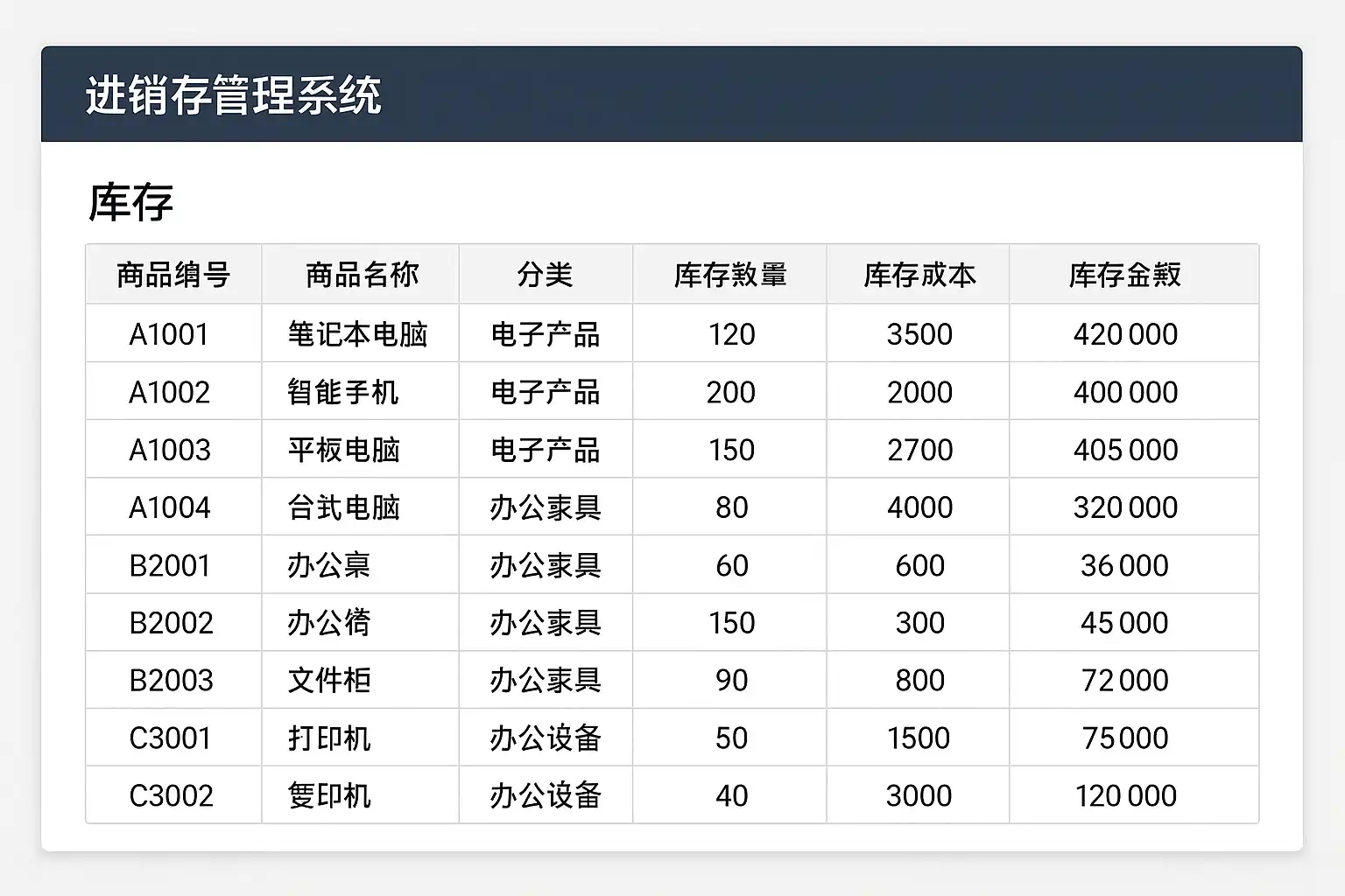 进销存管理系统的库存内容主要包括以下关键要素: