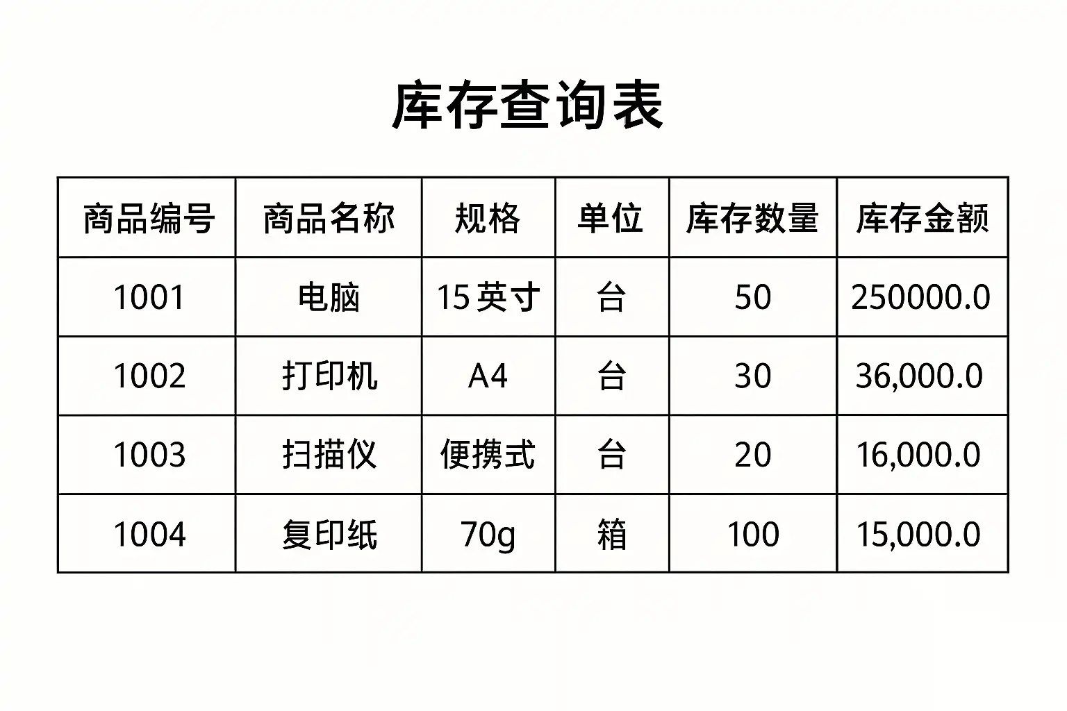 我刚开始使用进销存系统,想做一个库存查询表,但不清楚需要包括哪些具体内容和字段。有哪些关键数据是必须展示的?