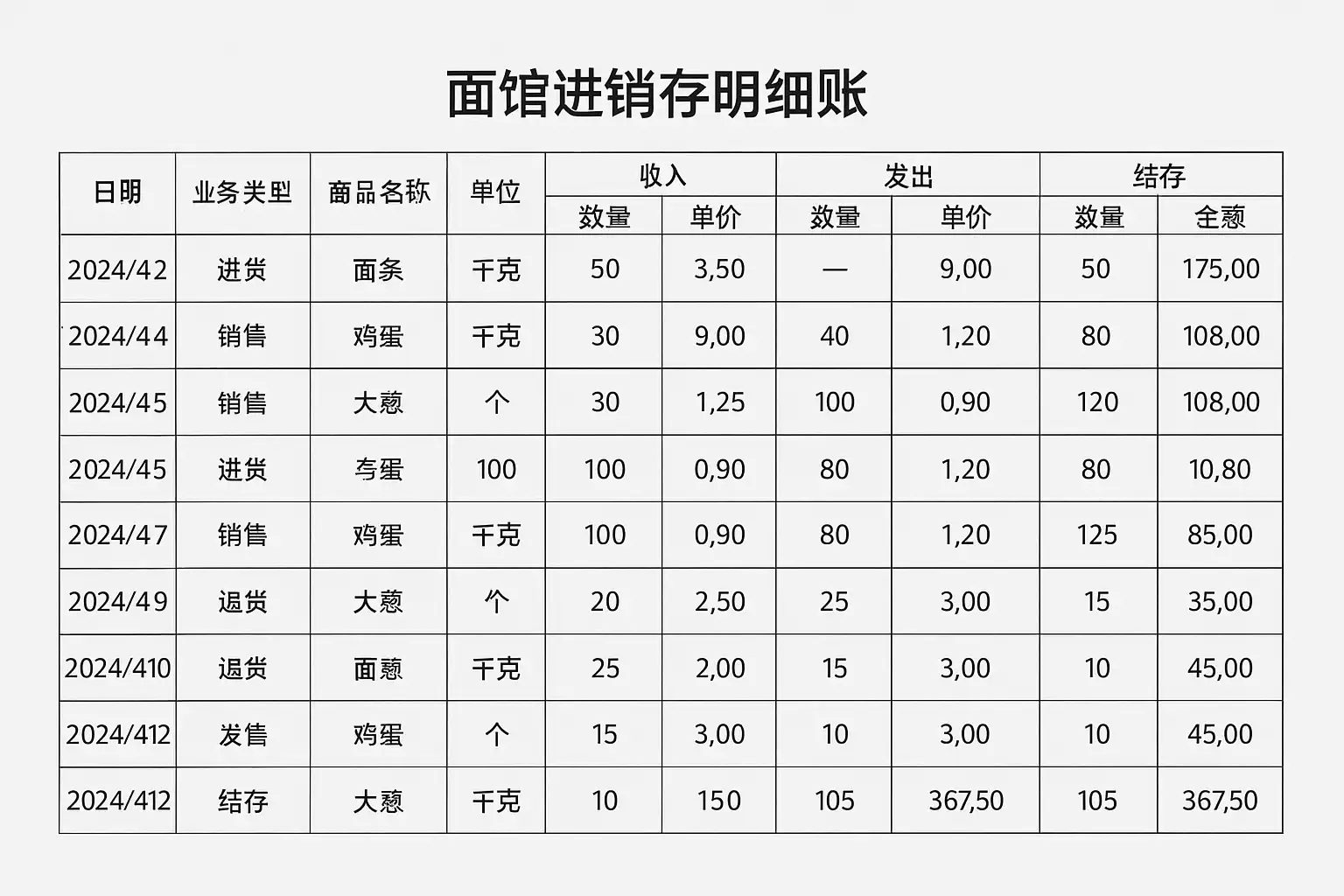 餐饮面馆在制作进销存明细账时常见错误包括: