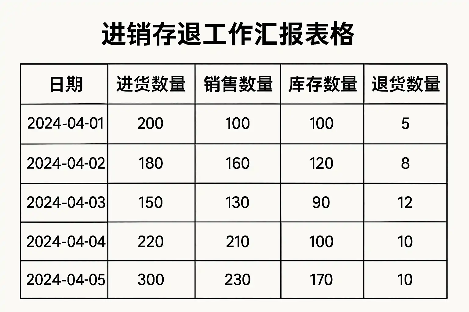 进销存退(即采购、销售、库存及其相关的退货业务)工作汇报表格,是反映企业物资流转及异常环节的重要工具。一个科学的进销存退表格应能覆盖: