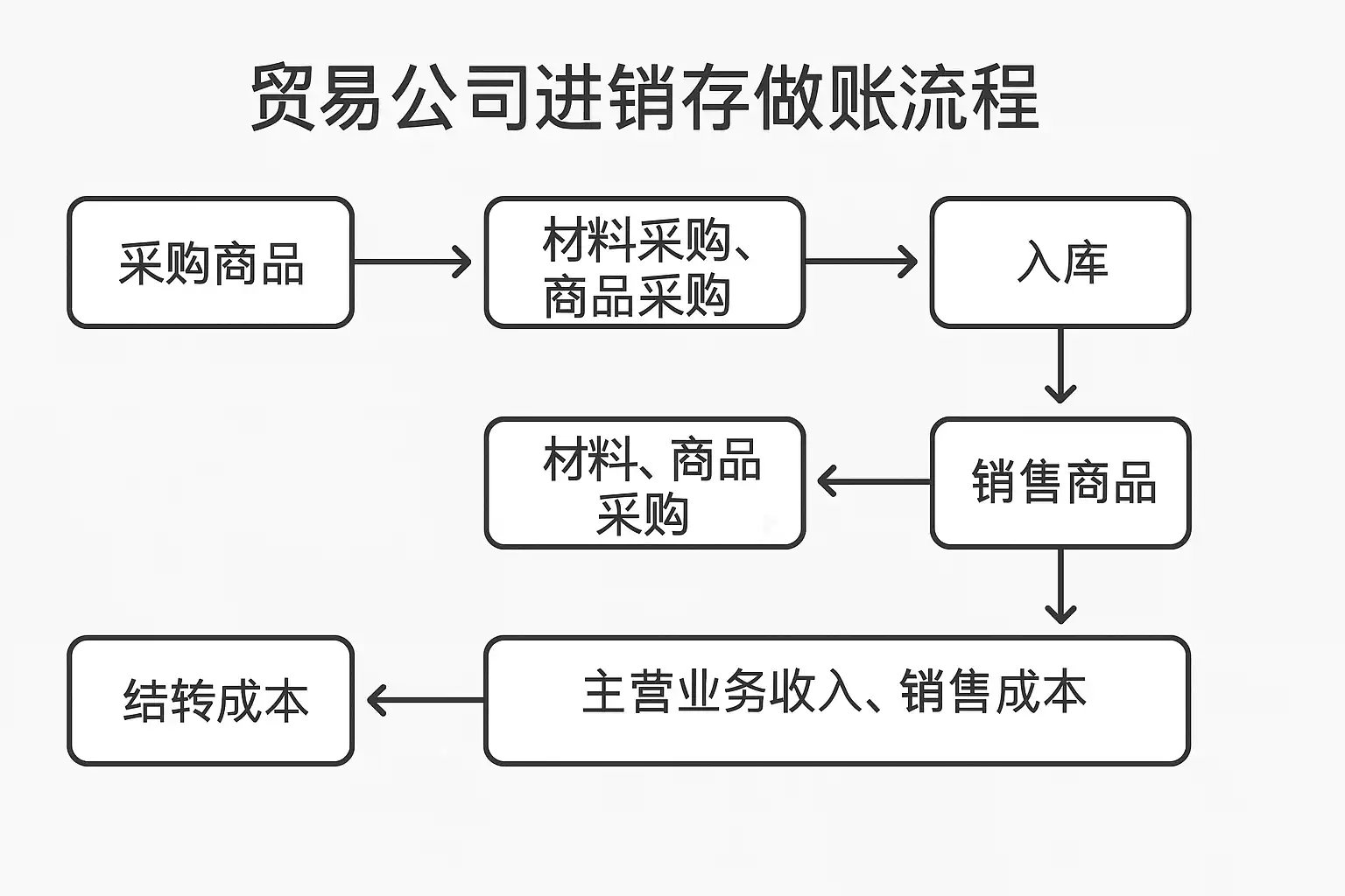 贸易公司进销存做账流程主要包括: