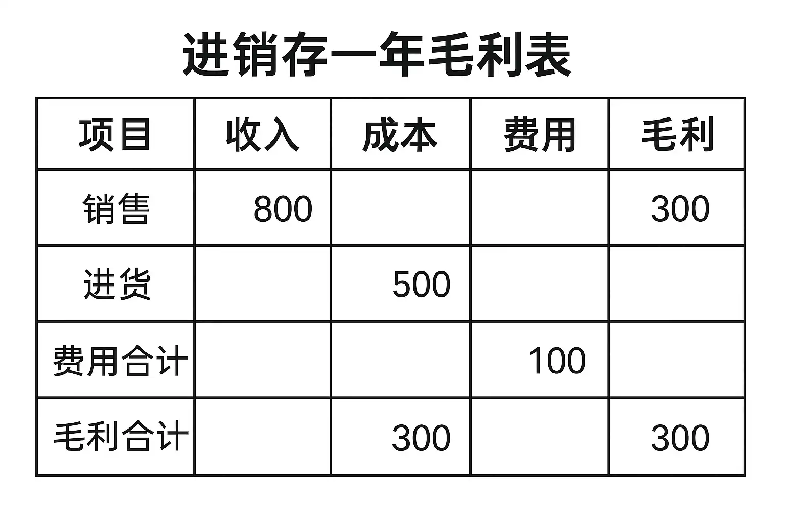| 5. 得出全年毛利 | 全年销售收入-主营业务成本=全年毛利润 |