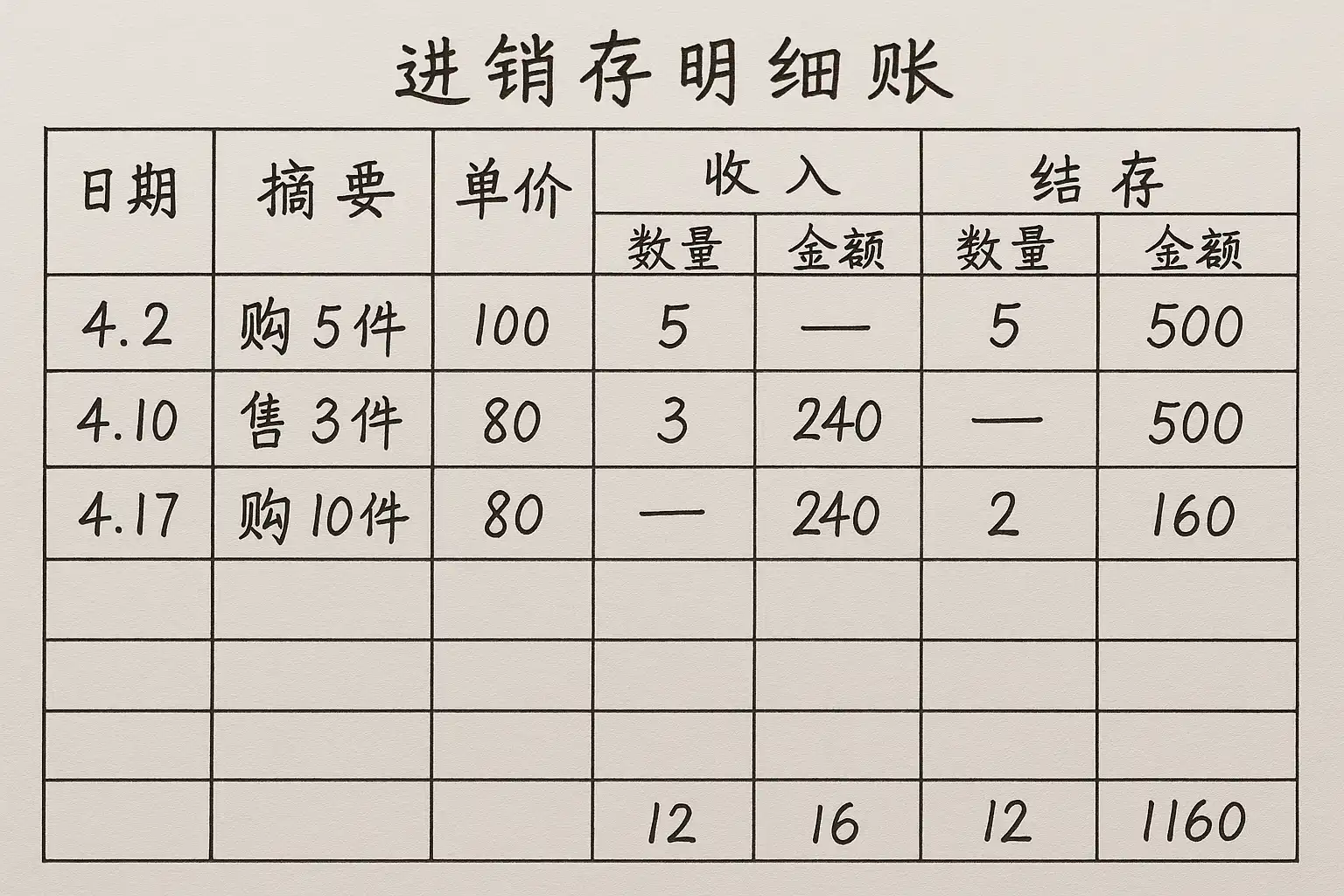 如何通过手工进销存明细账表格图片实现库存管理?