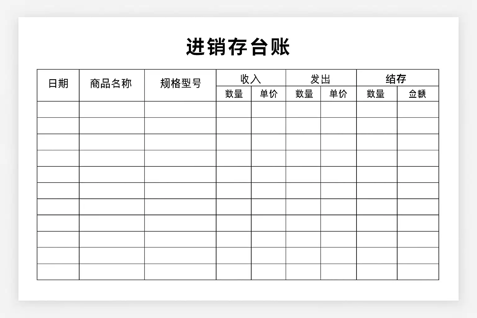一个标准且实用的零售商品进销存台账应当包含如下几个基础栏目: