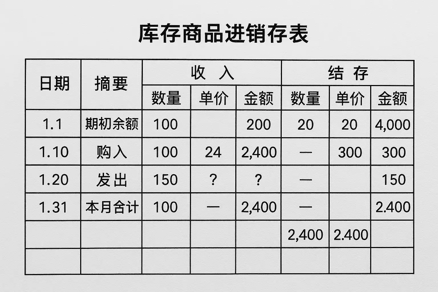 | 4. 成本核算 | 运用先进先出法/加权平均法等方式计算本期发出及结余商品成本 |