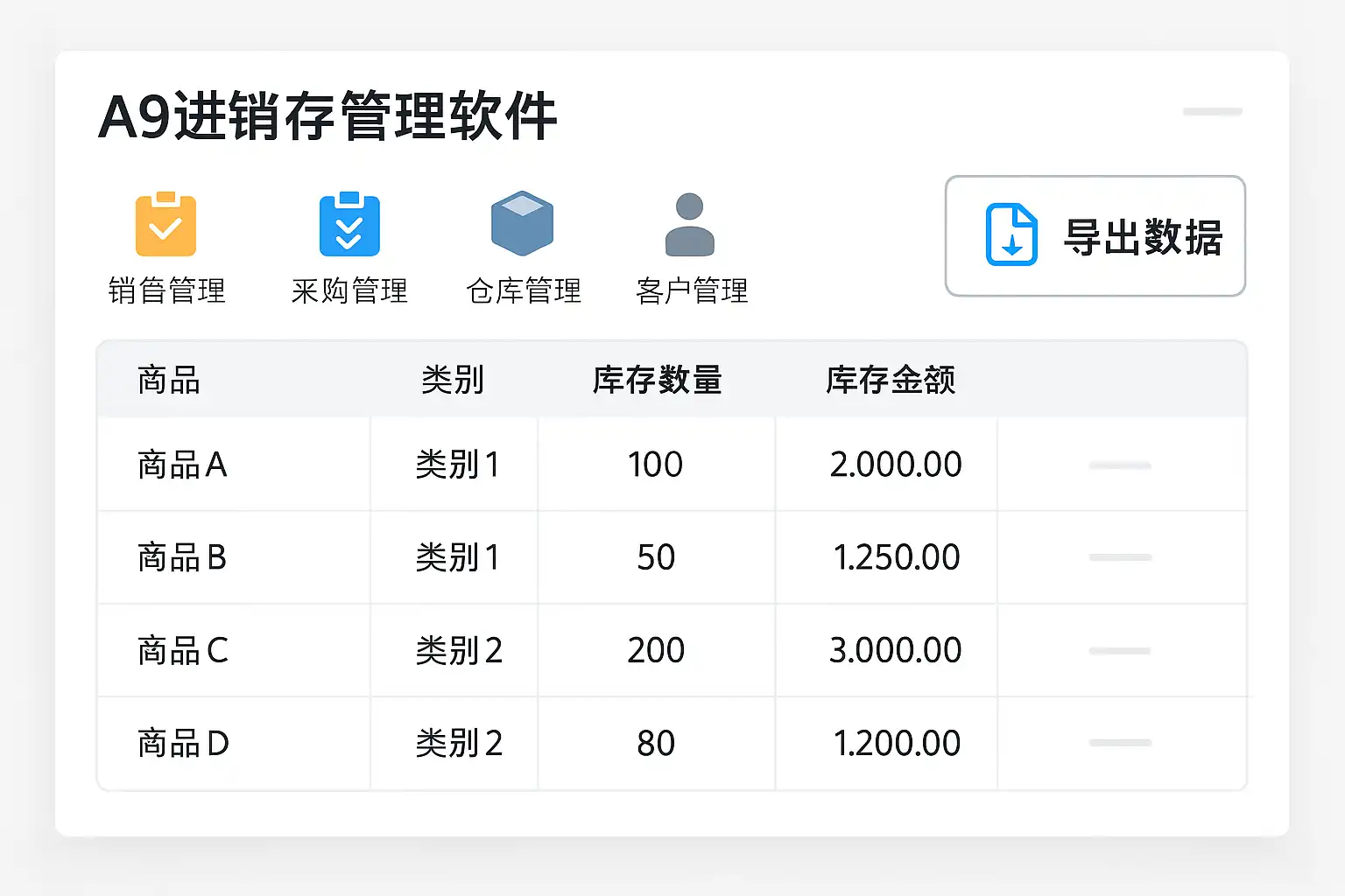 a9进销存一般支持多种形式的数据导出,以满足不同业务需求。主要方式如下: