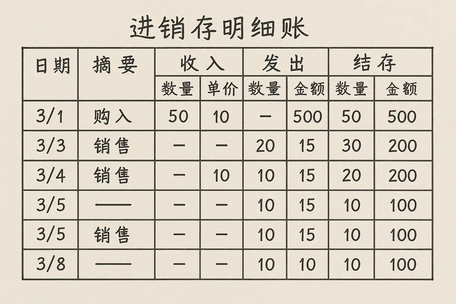 - 结存数量/金额:按公式计算(=期初+入库-出库)
