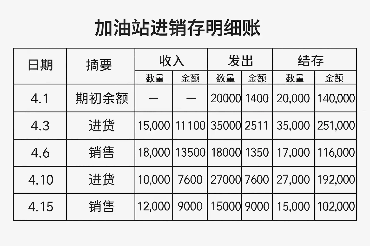 采用表格形式管理这些数据,有助于直观跟踪库存流转,提升加油站运营效率。