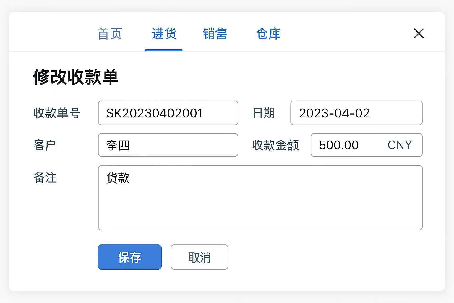 - 保存修改后,系统会自动更新相关财务和库存数据。