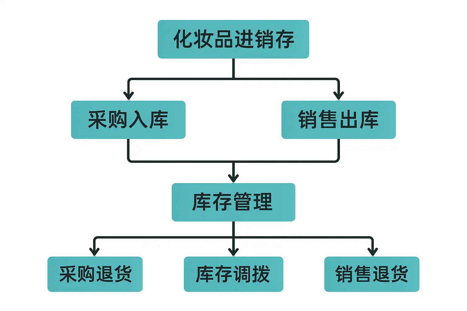 化妆品行业由于产品种类繁多、更新换代快,对进销存(采购-销售-库存)管理有着更高要求。其核心流程如下: