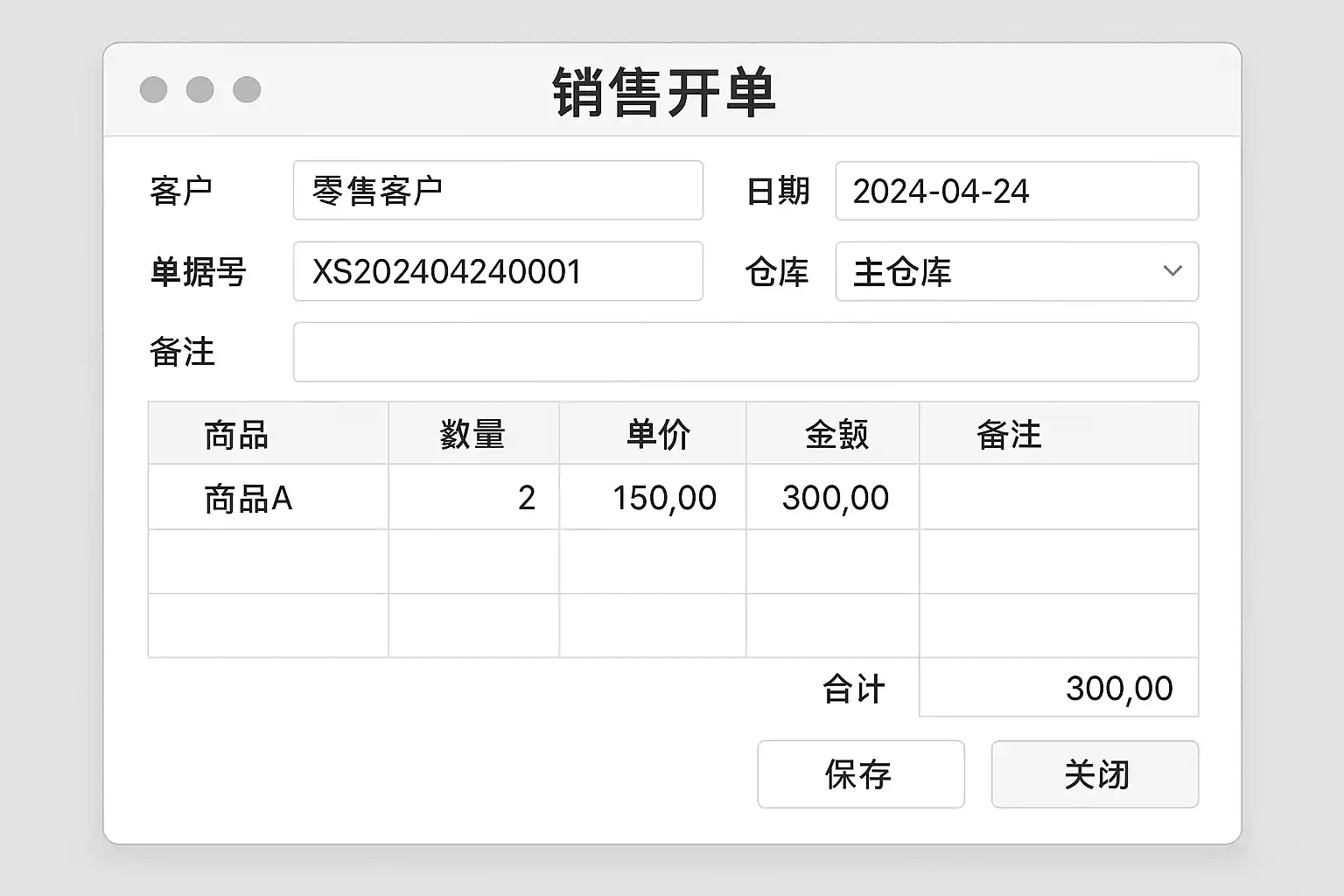 | 6 | 保存并生成销售订单 | 可选打印小票或电子发送 |