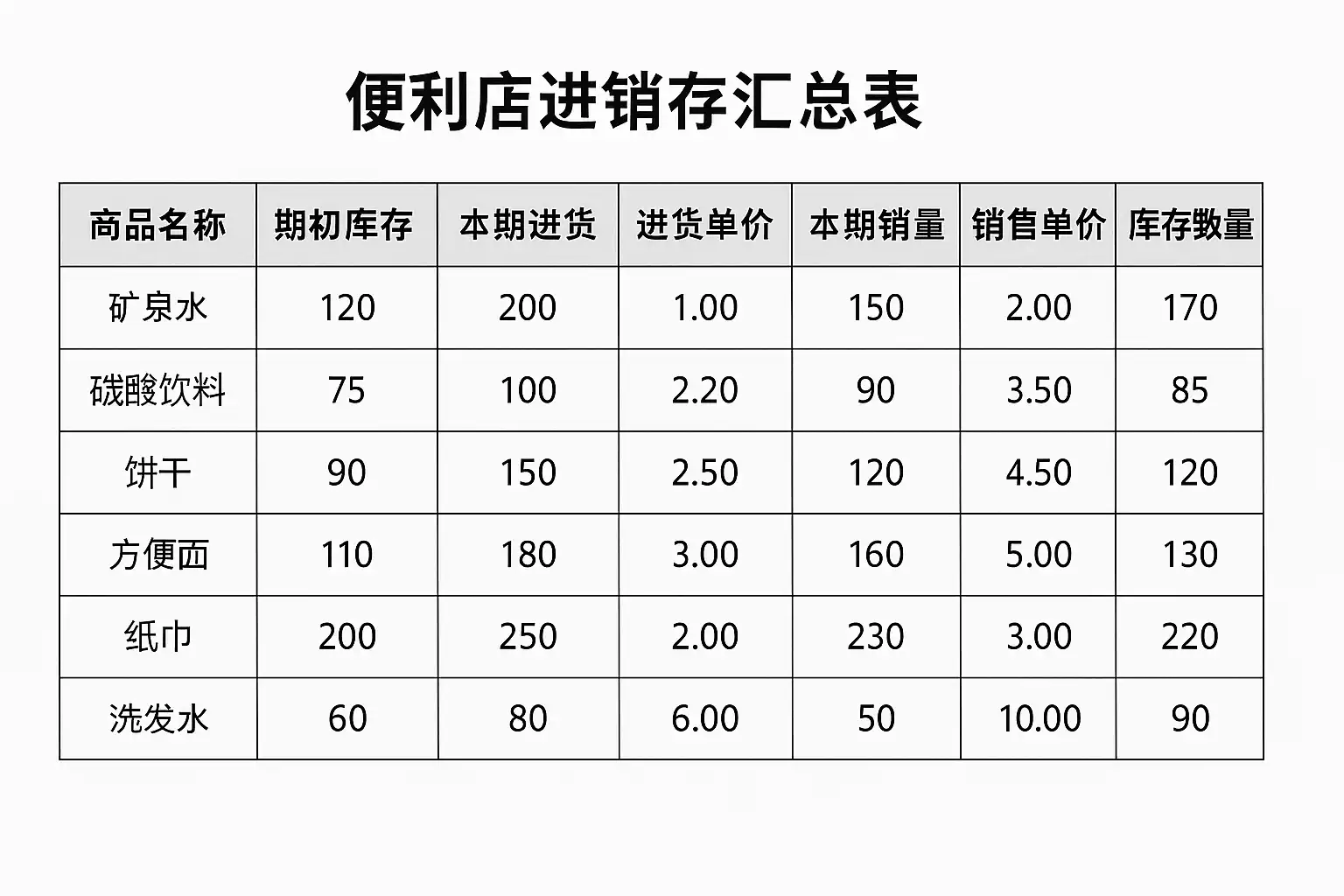 一、明晰便利店进销存汇总表的基础框架