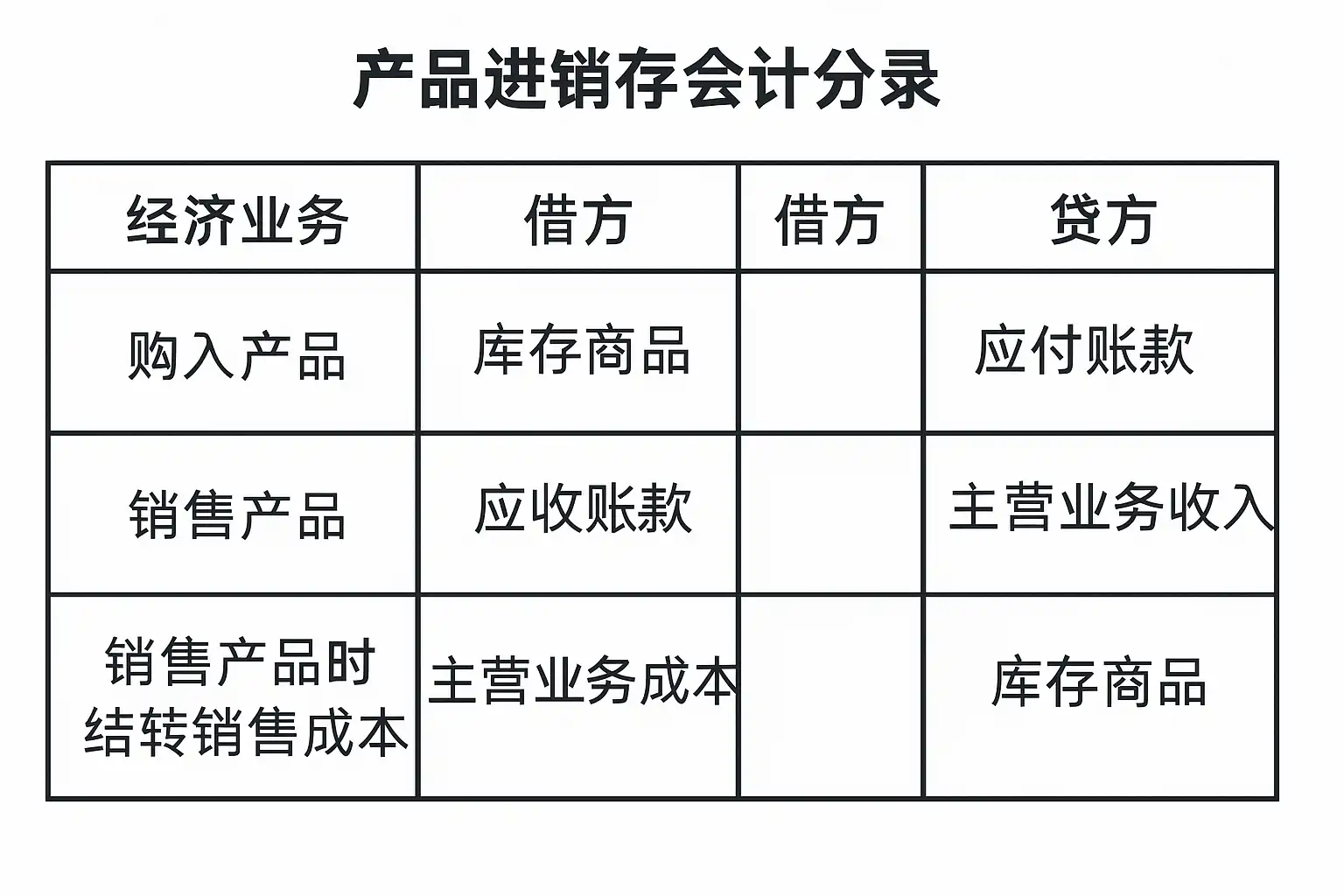 - 借:库存商品(增加资产)