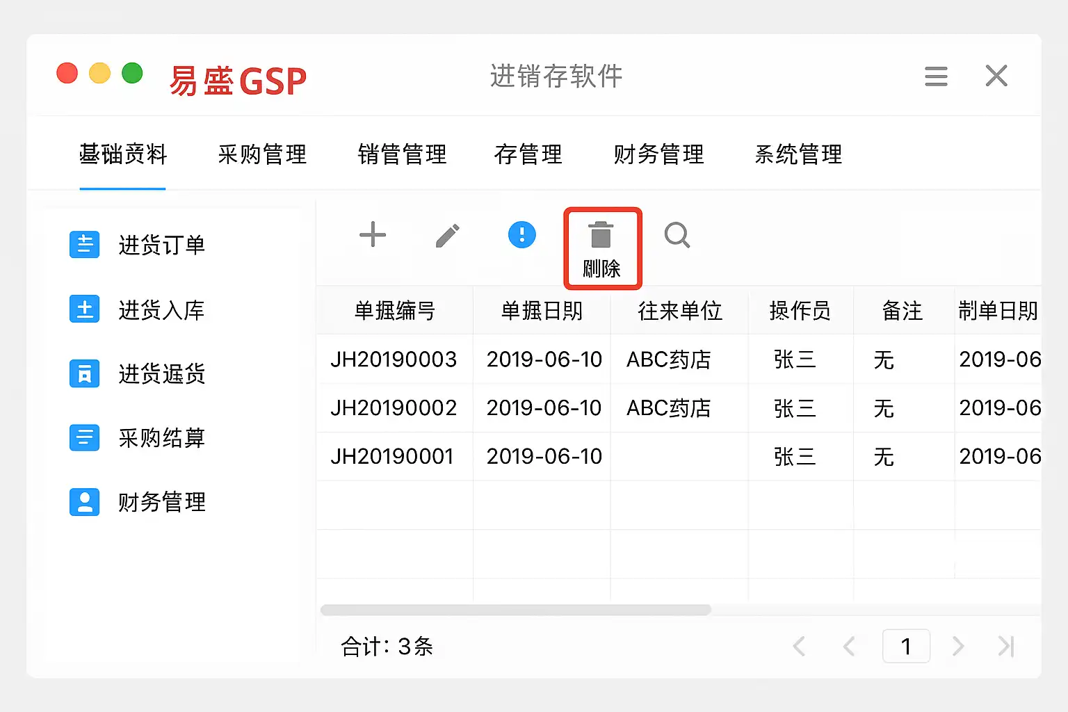 在易盛gsp进销存软件中,删除数据通常包括采购单、销售单、库存记录等。以下是标准的数据删除流程: