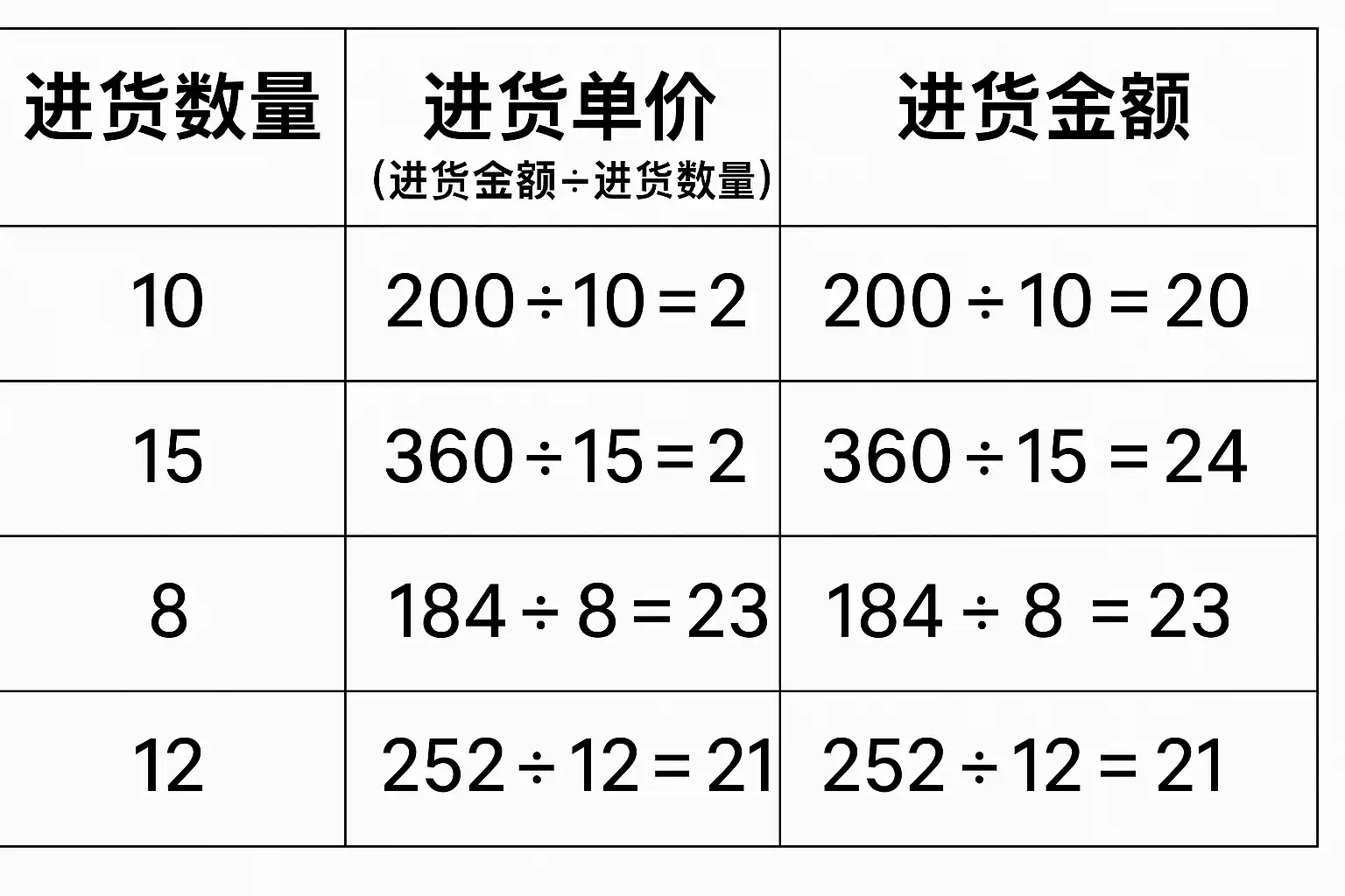 进货单价 = 总采购金额 ÷ 采购数量