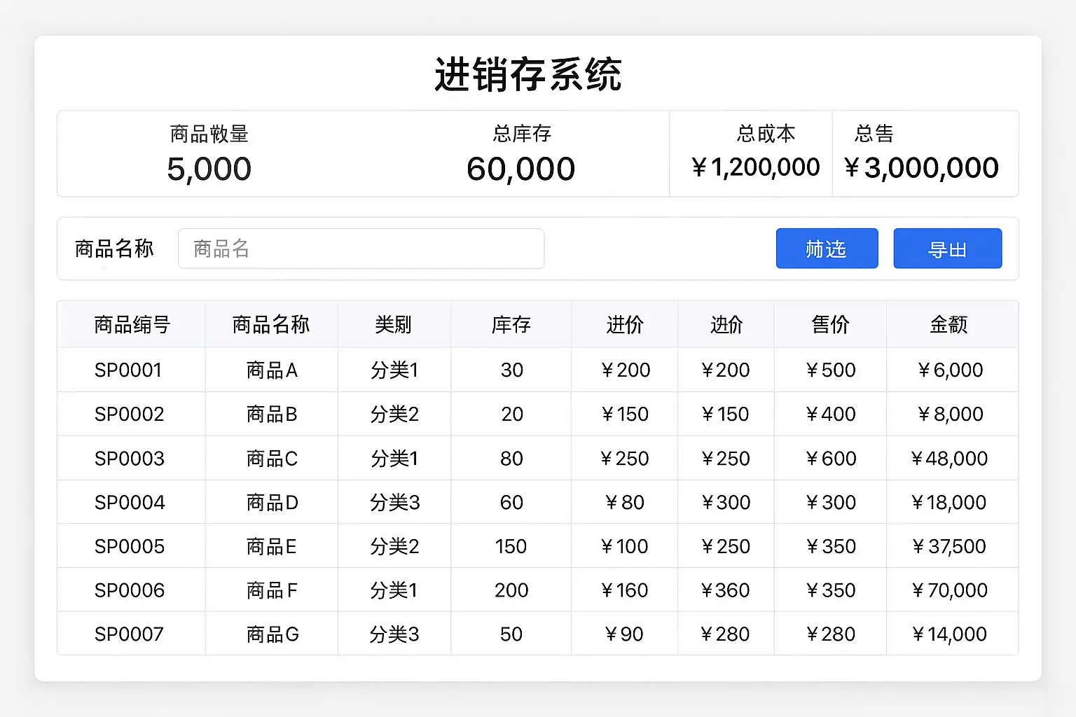 | 集中数据录入与查询 | 一次性批量导入所有商品信息,支持多条件快速检索 |
