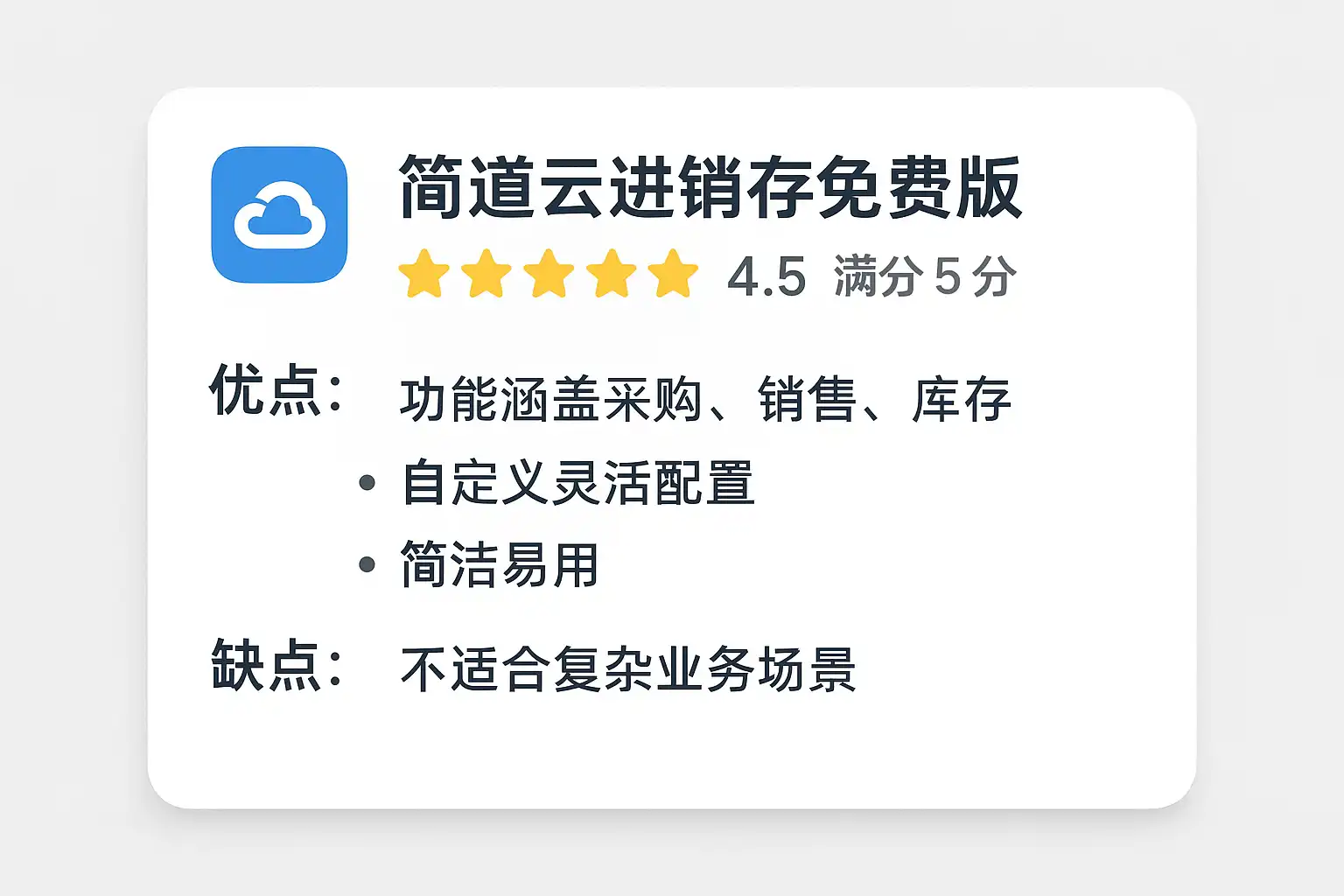 为了更直观地体现简道云进销存免费版的竞争力,现将其与市面主流几款免费/开源进销存工具进行比较: