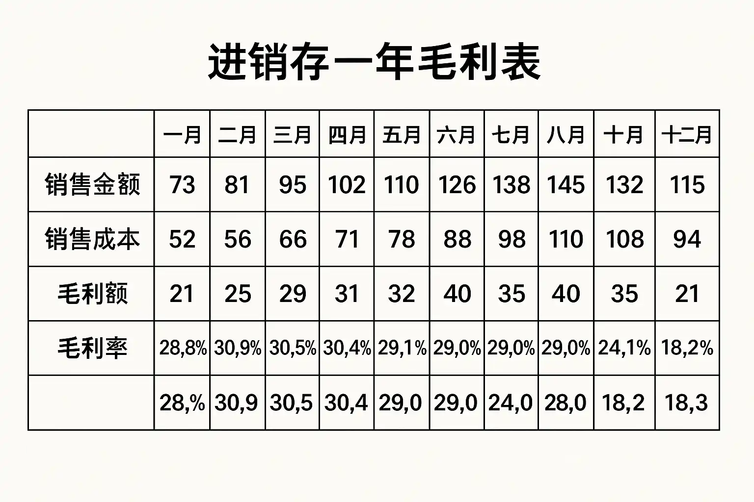 为了更好地理解理论内容,下方列出典型的一年期进销存+毛利益润总览样板,并结合实际业务场景加以说明: