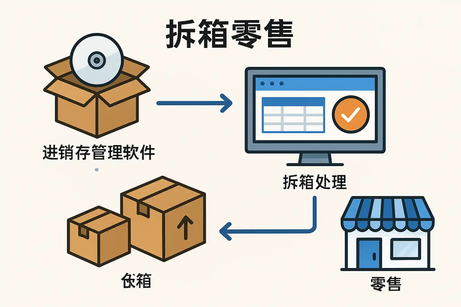 - 数据校验:通过条形码或SKU核对拆箱与销售数据,确保库存准确。