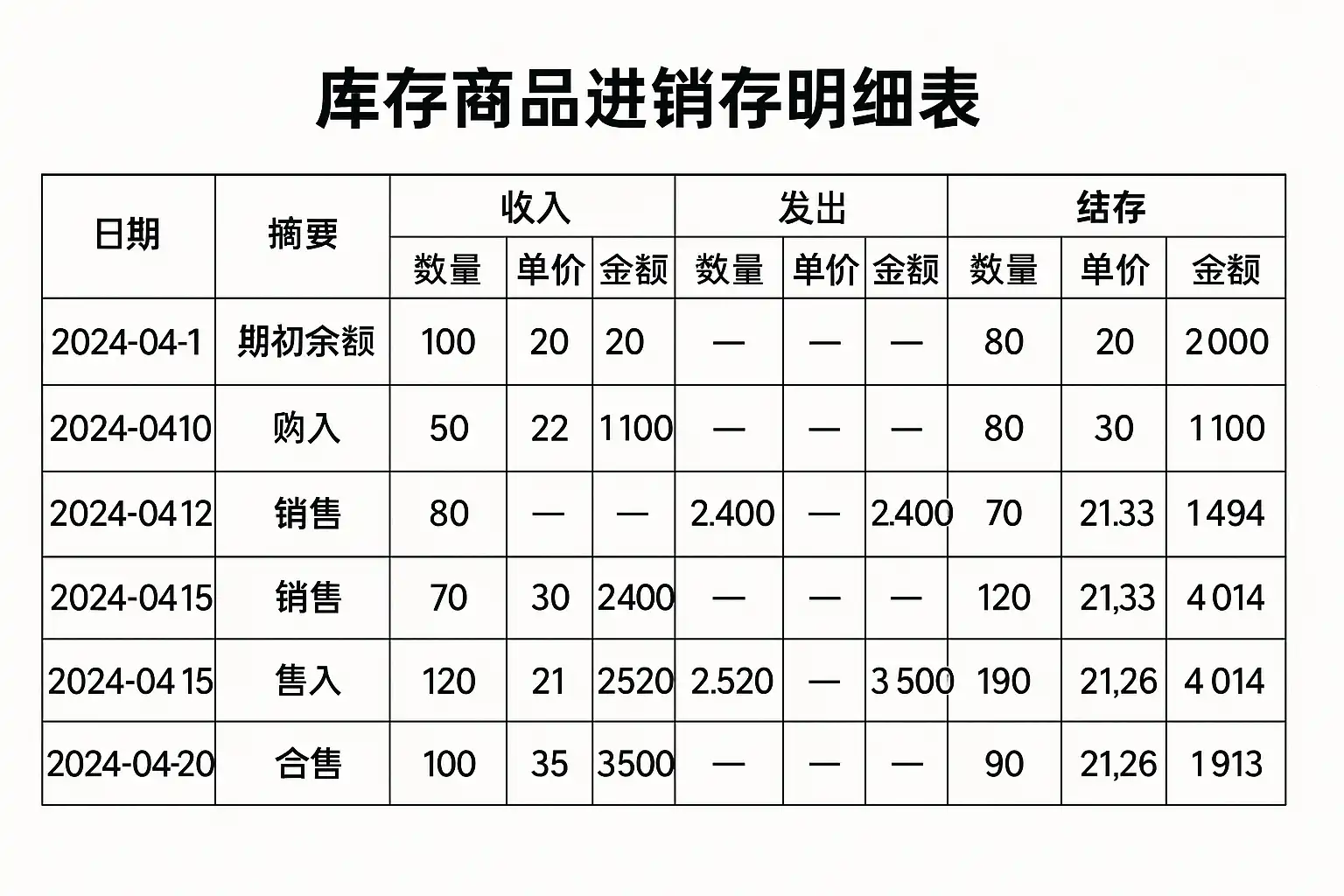 - 期末结存:根据盘点结果调整“库存商品”余额。