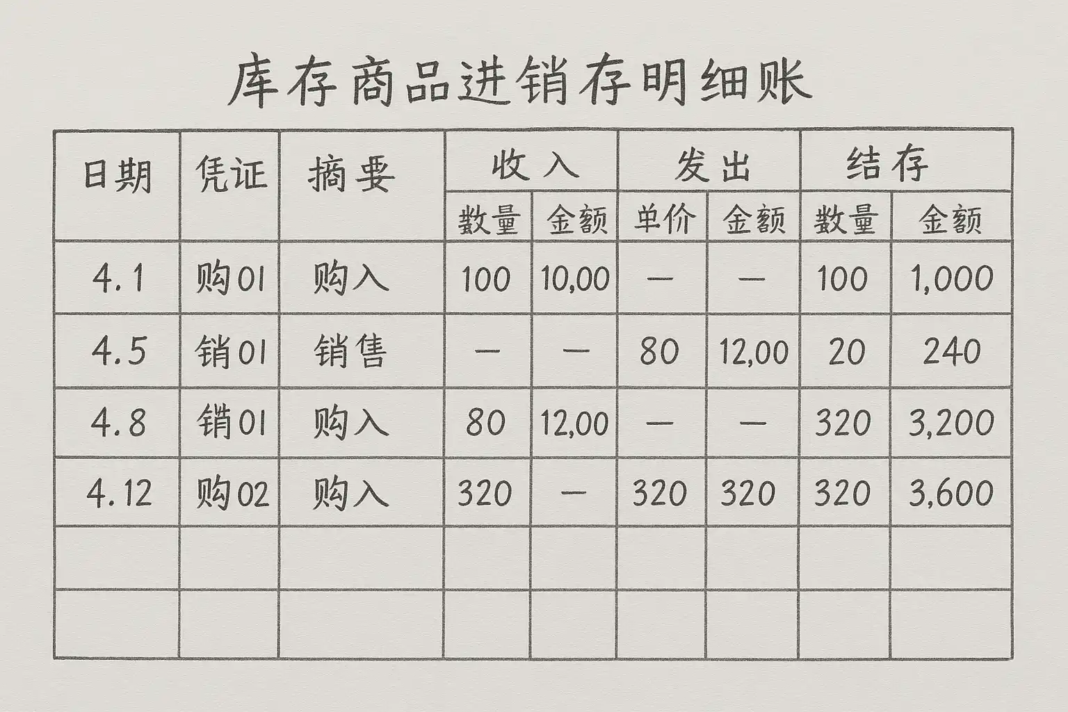 手写库存商品进销存明细账步骤详解,如何正确记录库存?