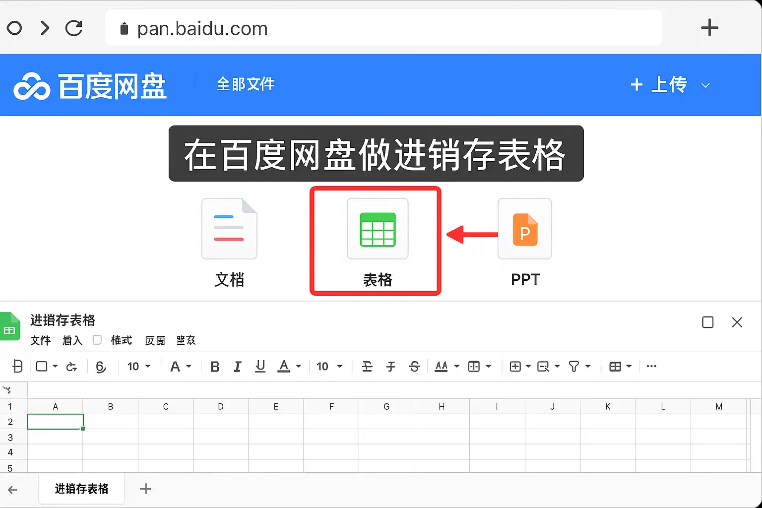 怎么在百度网盘上创建和管理进销存表格?