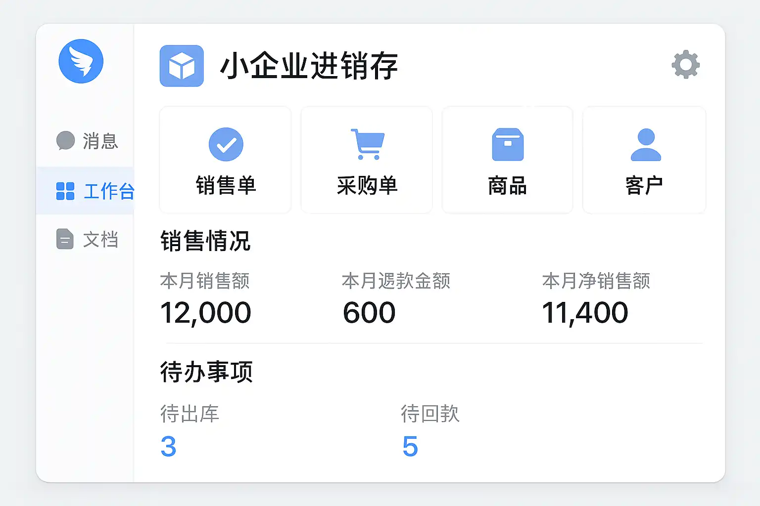 - 自动化提醒与审批: 支持消息推送功能,如低库存预警、新订单待处理提醒,以及一键发起审批流,加快业务响应速度。