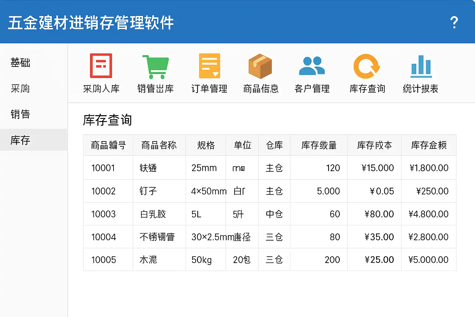 五金建材品种繁多,型号规格复杂。只有先将所有商品及仓库信息整理录入系统,才能保证后续业务顺畅进行。