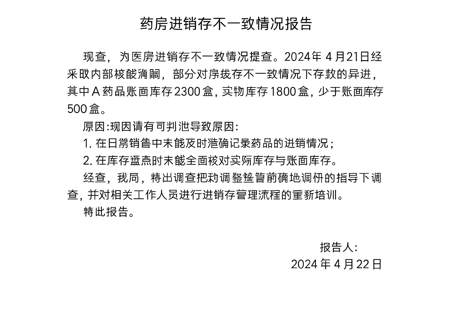 药房进销存不一致报告范文详解,如何写出规范报告?