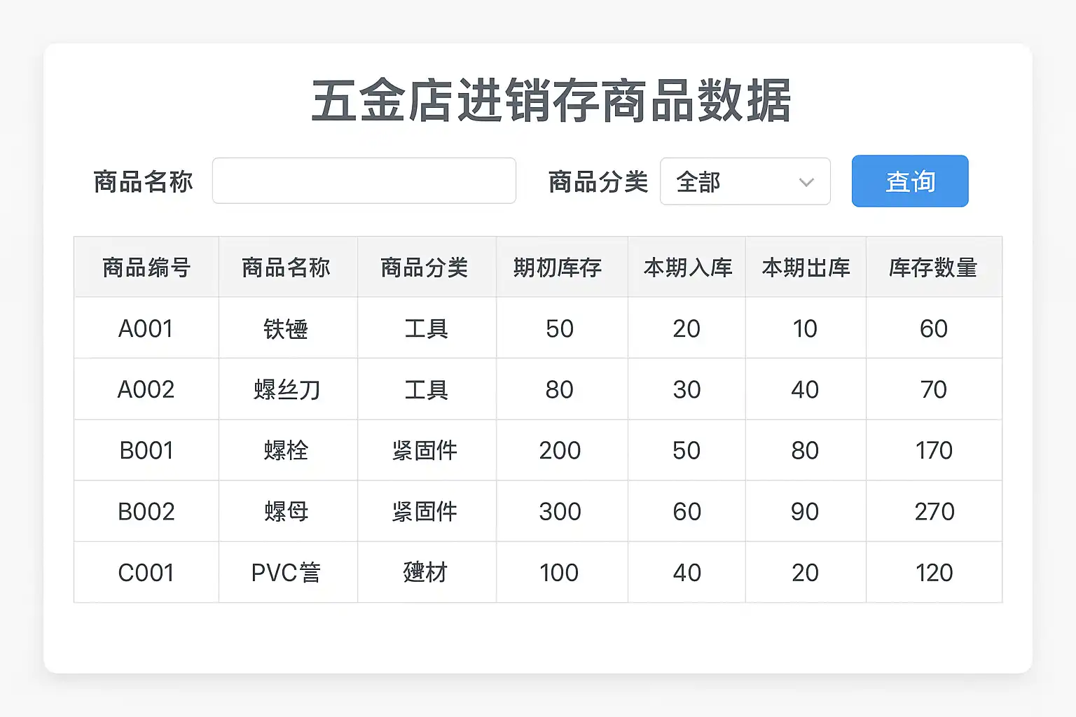 五金店进销存商品数据查询方法详解,怎么快速查找数据?