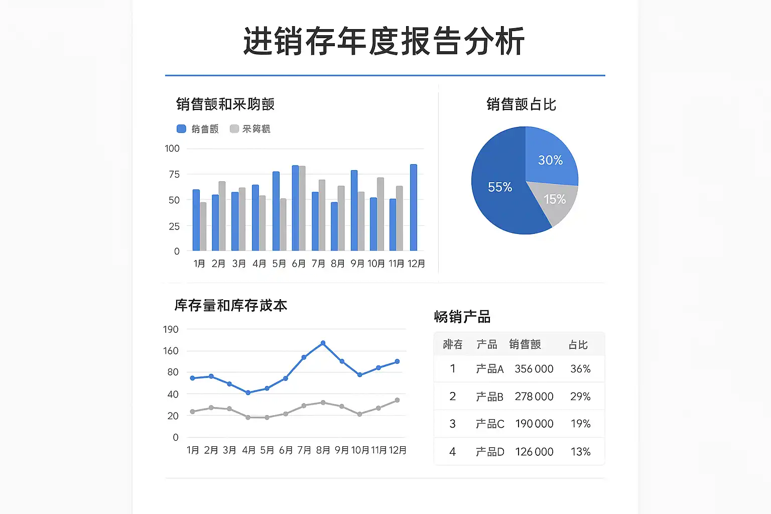 制作进销存系统的年度报告分析,首先需从库存周转率、销售额、采购量和库存成本四个关键指标入手。通过对比去年同期数据,识别销售趋势和库存积压情况。例如,库存周转率低于行业平均值3.5次/年时,说明库存积压风险较大。结合图表展示销售增长曲线和采购成本波动,有助于直观反映业务状况。此外,可利用结构化数据表格整理各类产品的销售与库存数据,提高信息密度和可读性。