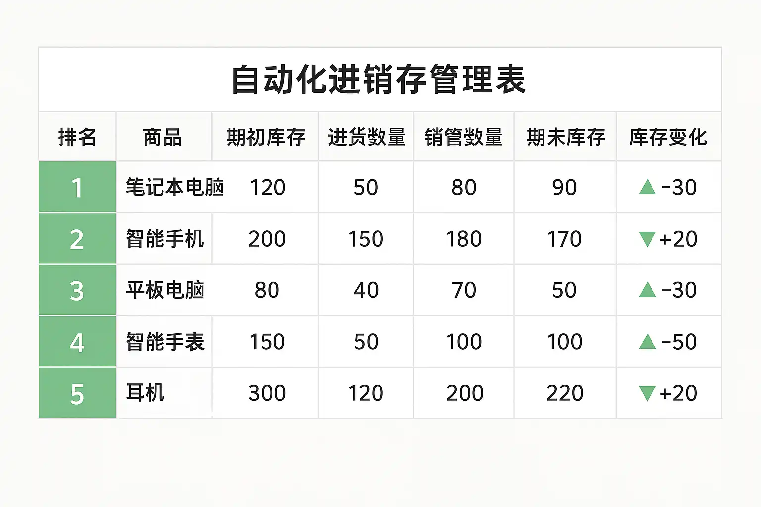 通过Excel或专业ERP系统,可以利用内置排序功能结合条件格式,实现自动动态更新排名。例如,某服装企业利用库存周转率排名,将滞销品及时清仓,库存周转提升了15%。