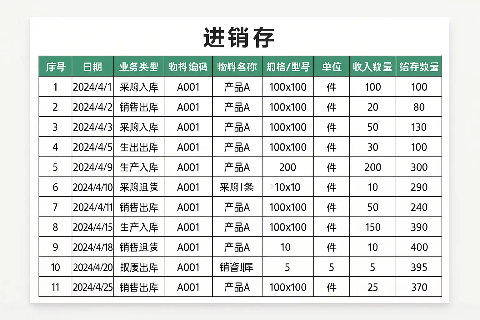 - 设计动态库存余额列,实时反映库存变化。