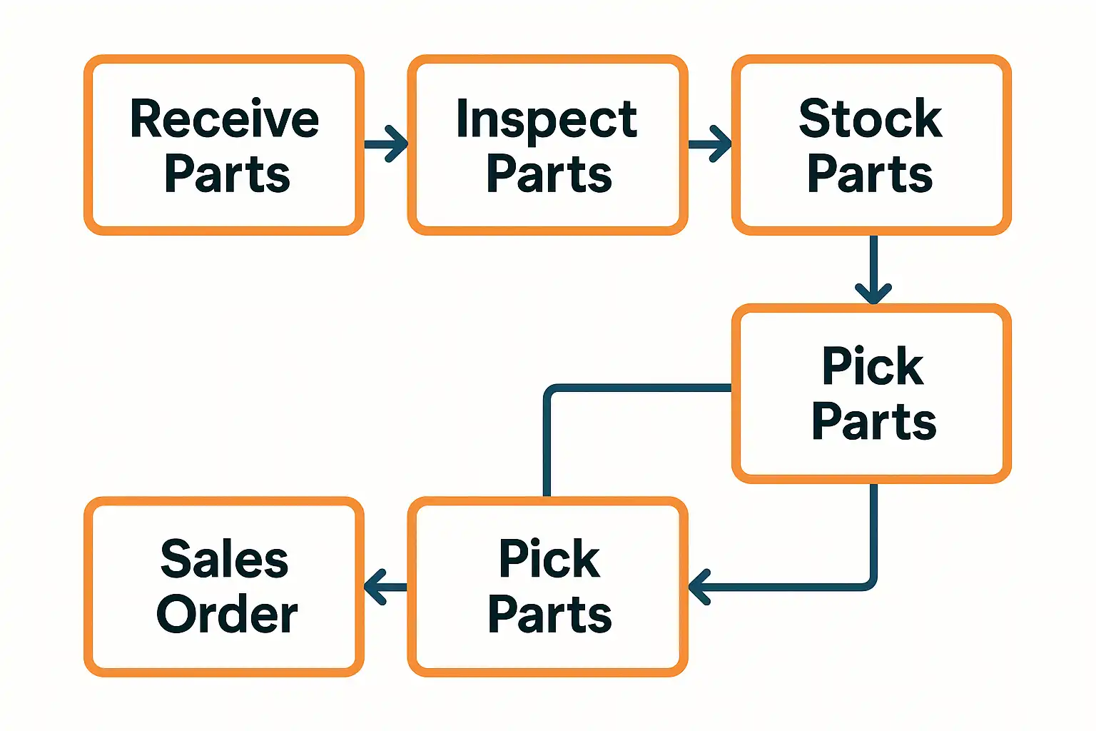 - 可导出标准化“零件进销存”完整流程图,也能随系统实时追踪每一步状态变化。