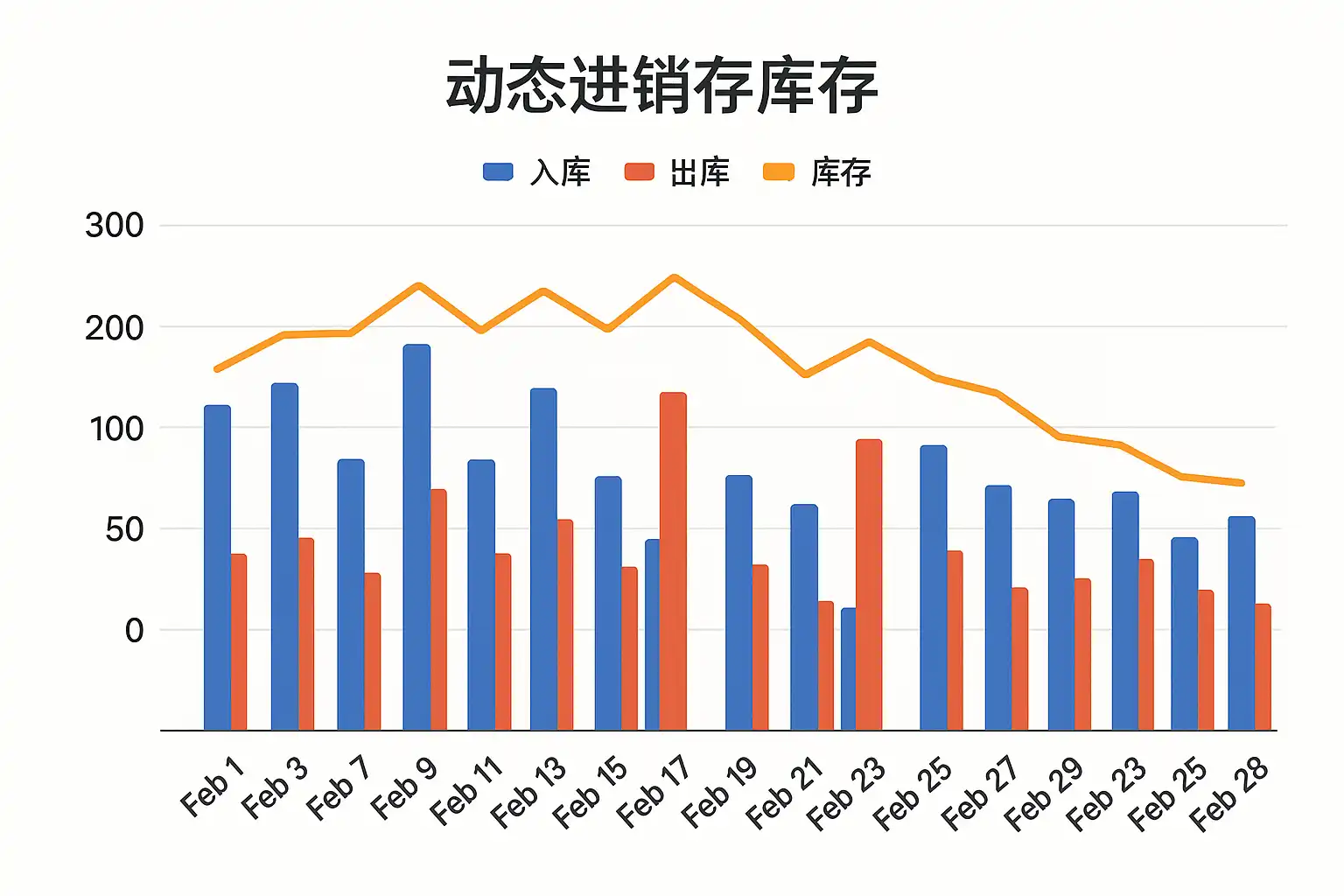 在动态进销存中,如何利用表格展示2月份每日库存变化以提升管理效率?