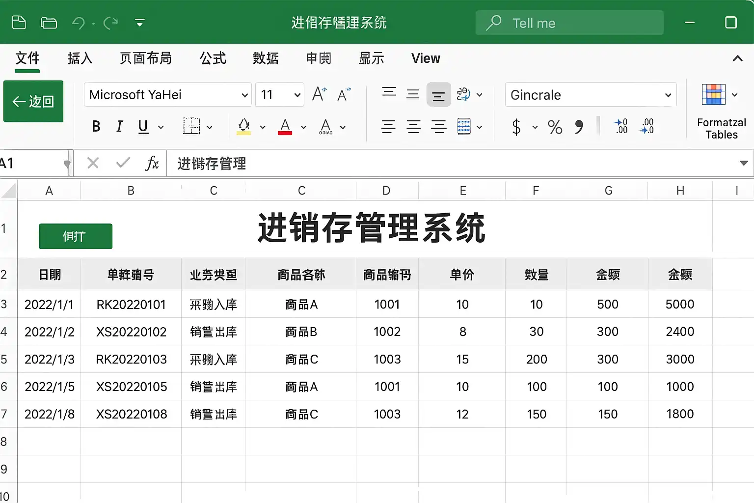 二、VBA宏:打造更智能化的进销存EXCEL表返回按钮