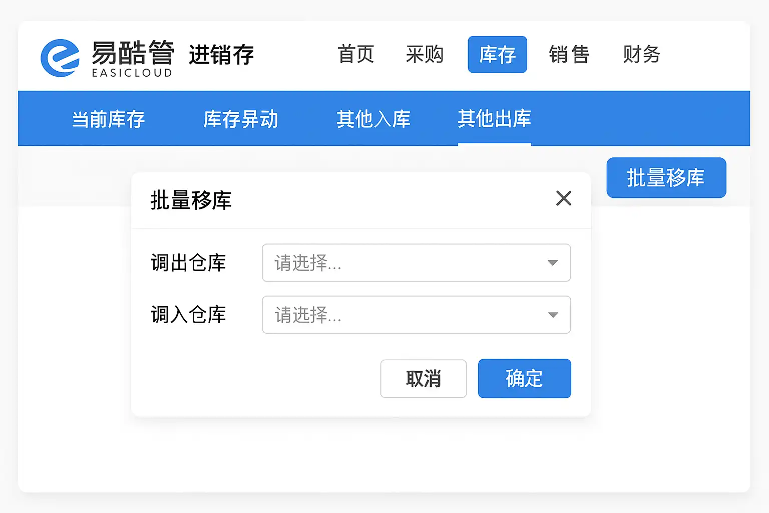 一、易酷管进销存批量移库的核心流程